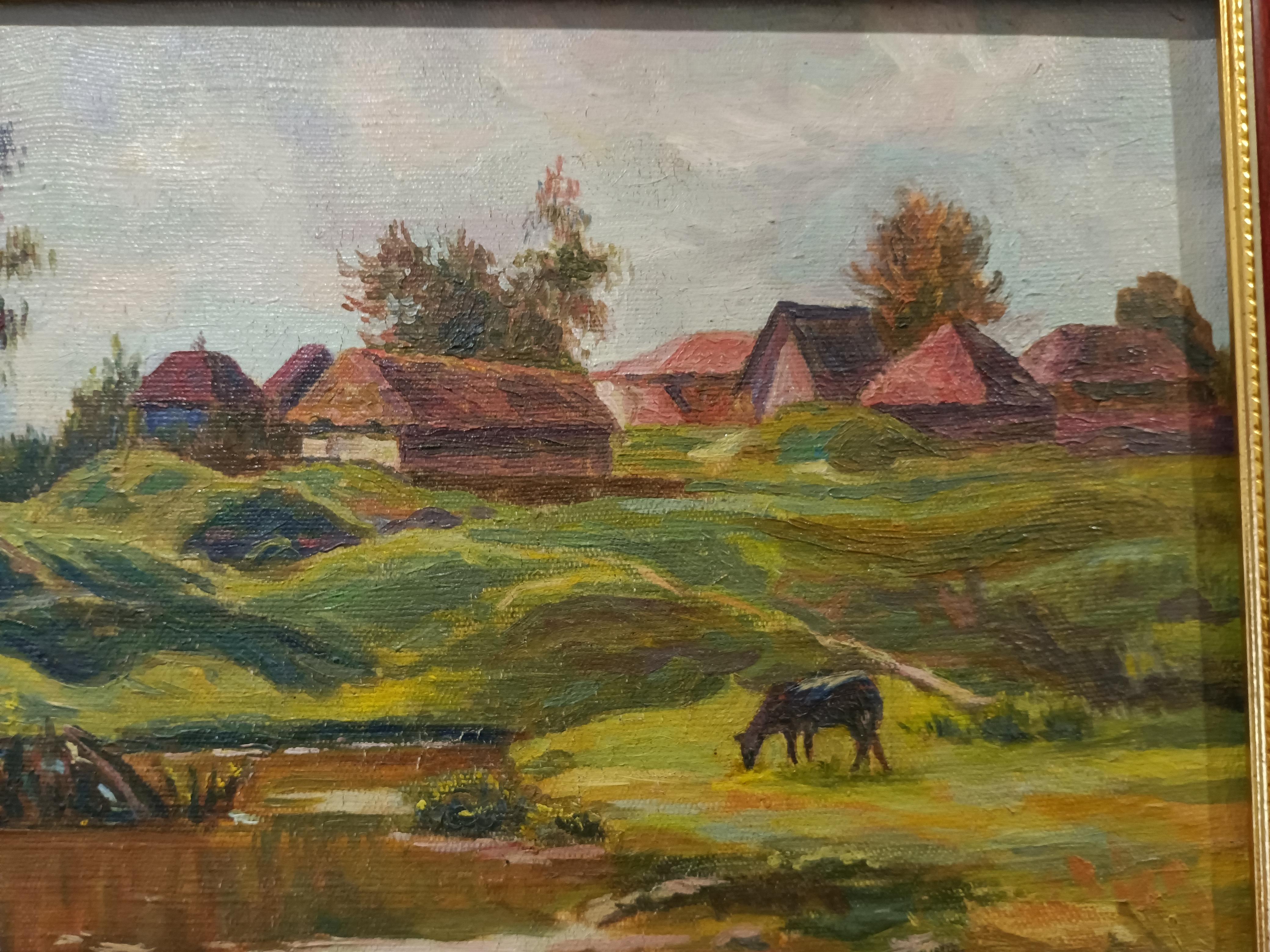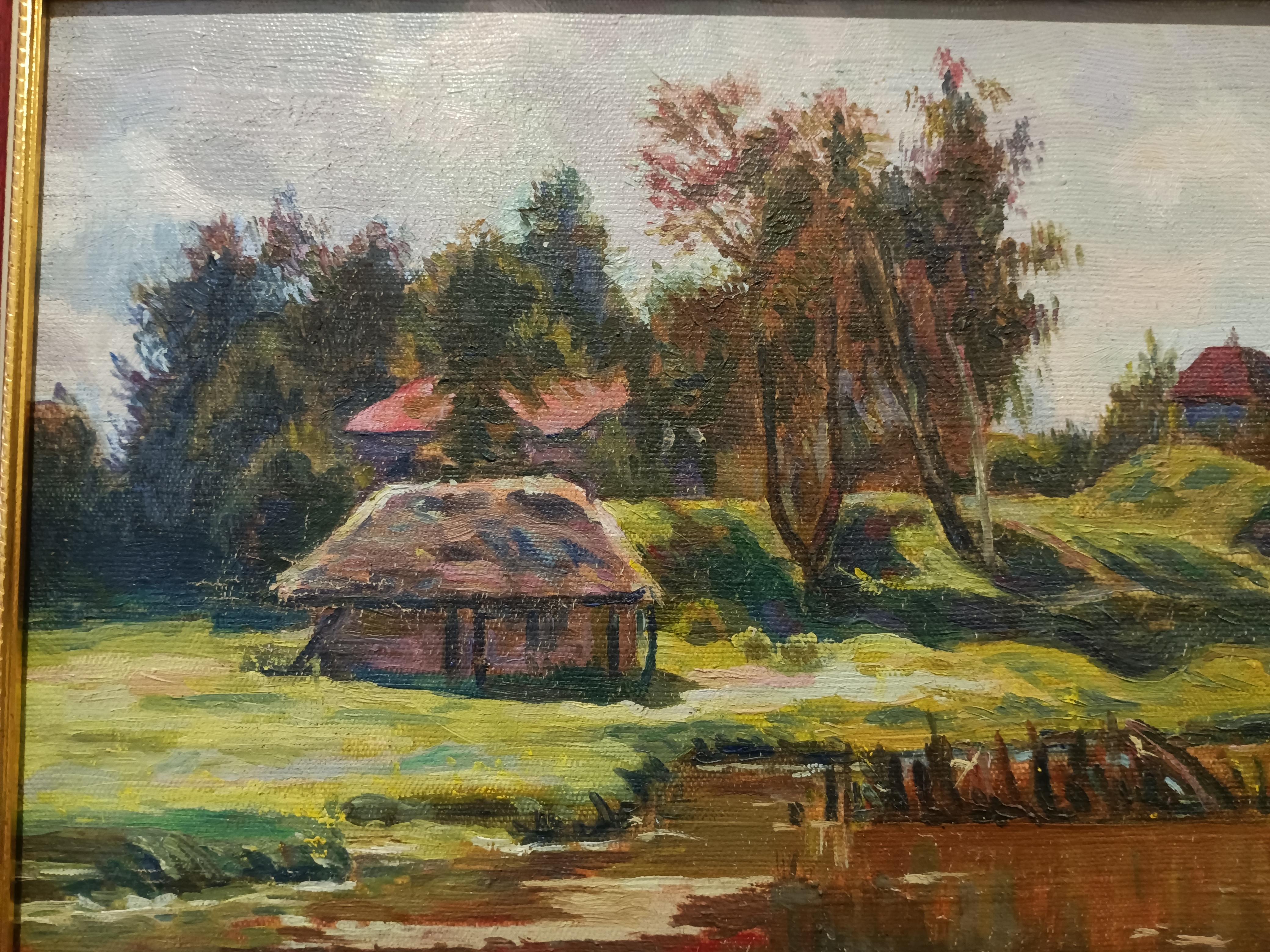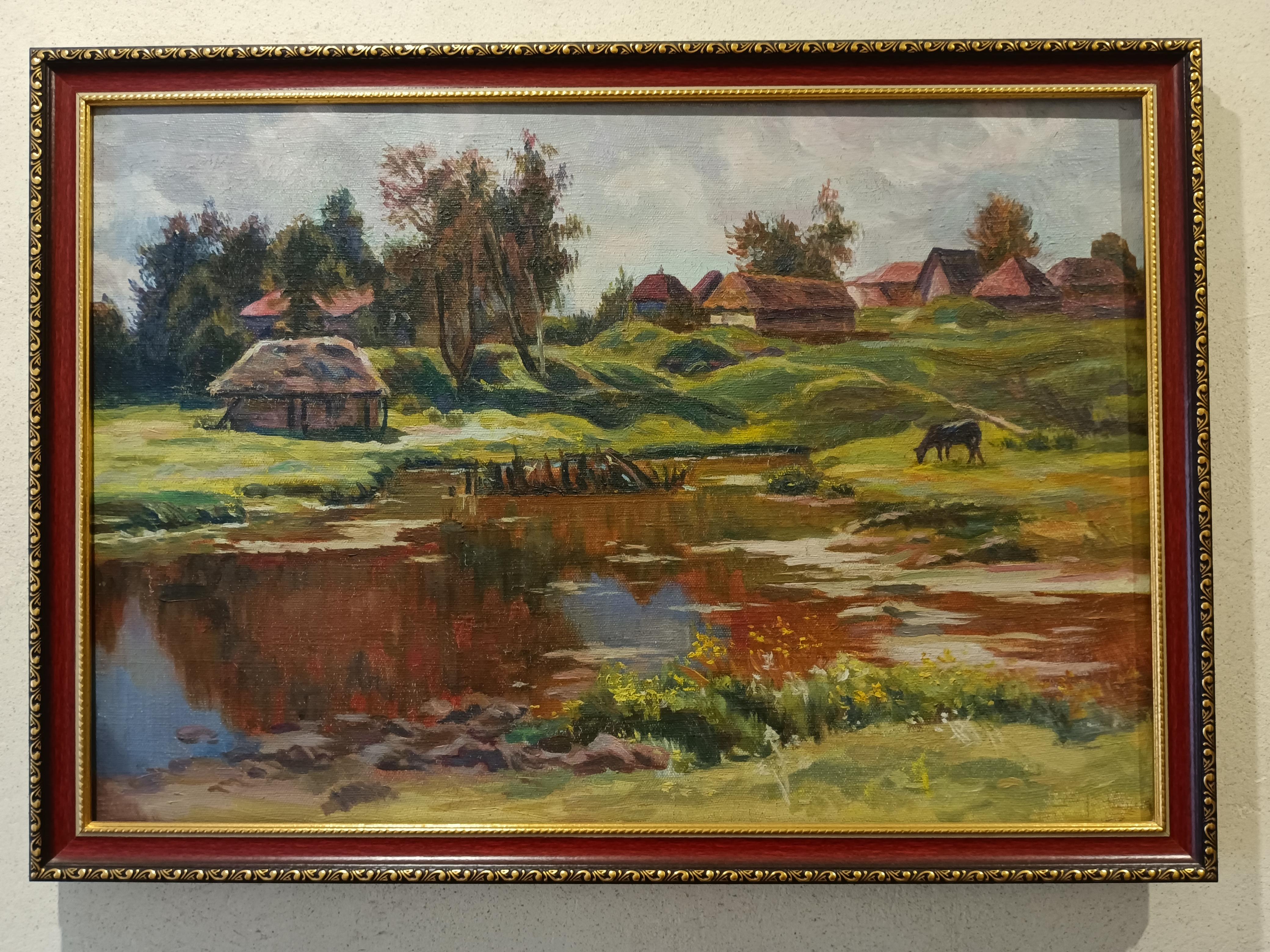 Борис Щербаков. Деревня Грумант. Копия Размер по багету 73*52 см, багет новый. Подпись затерта.