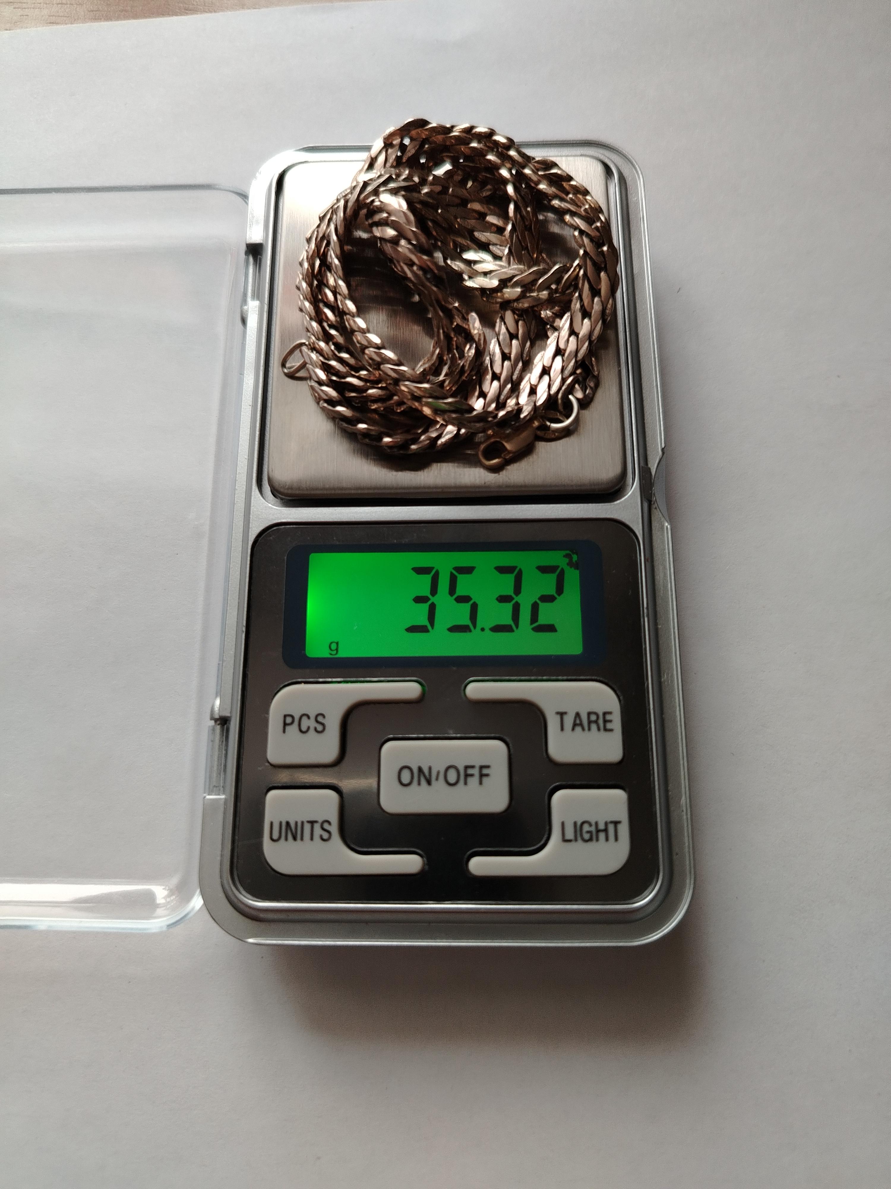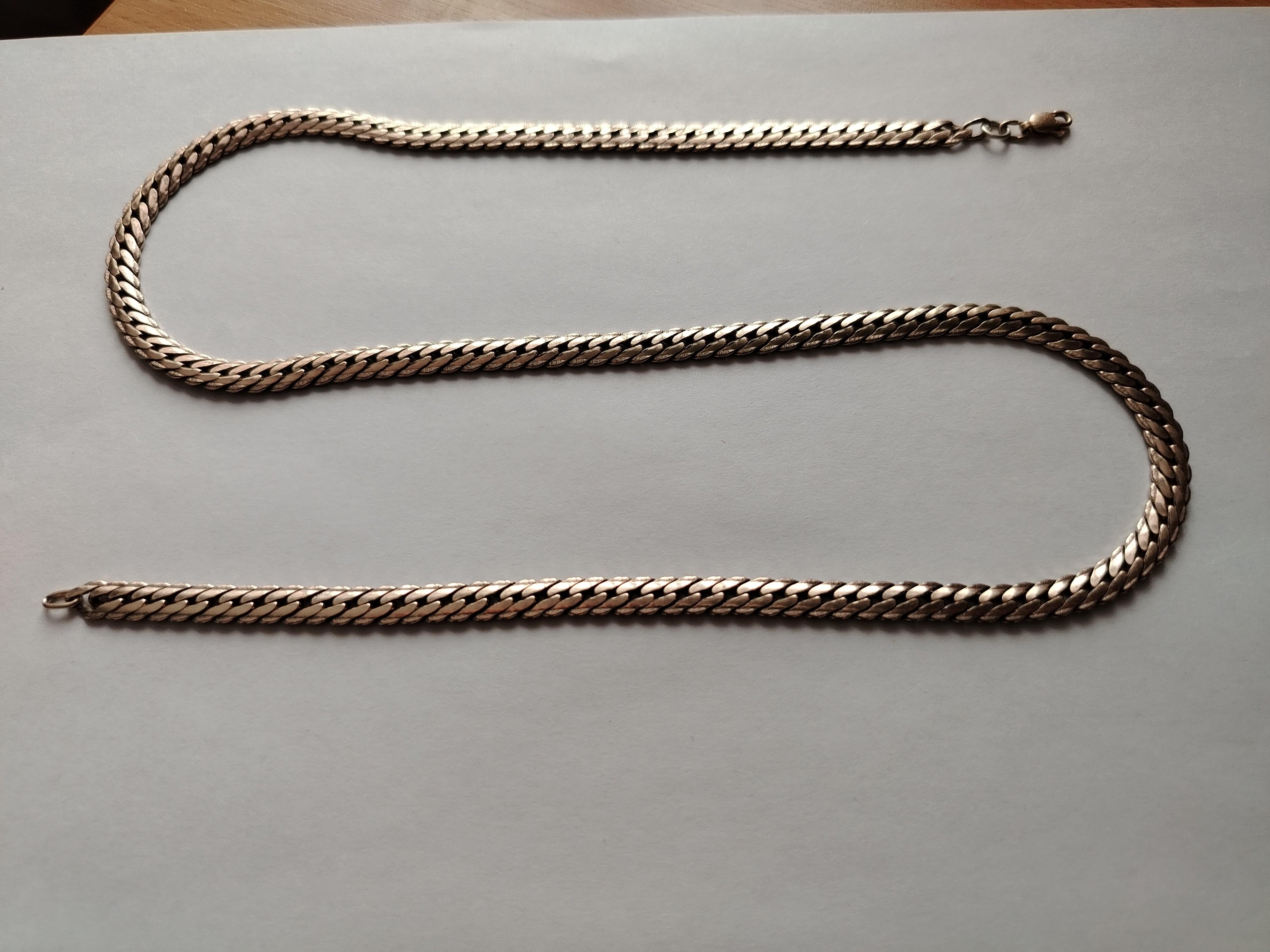Цепь серебряная новая 58 см Очень красивого плетения , с легкой позолотой Вес 35,32 гр.