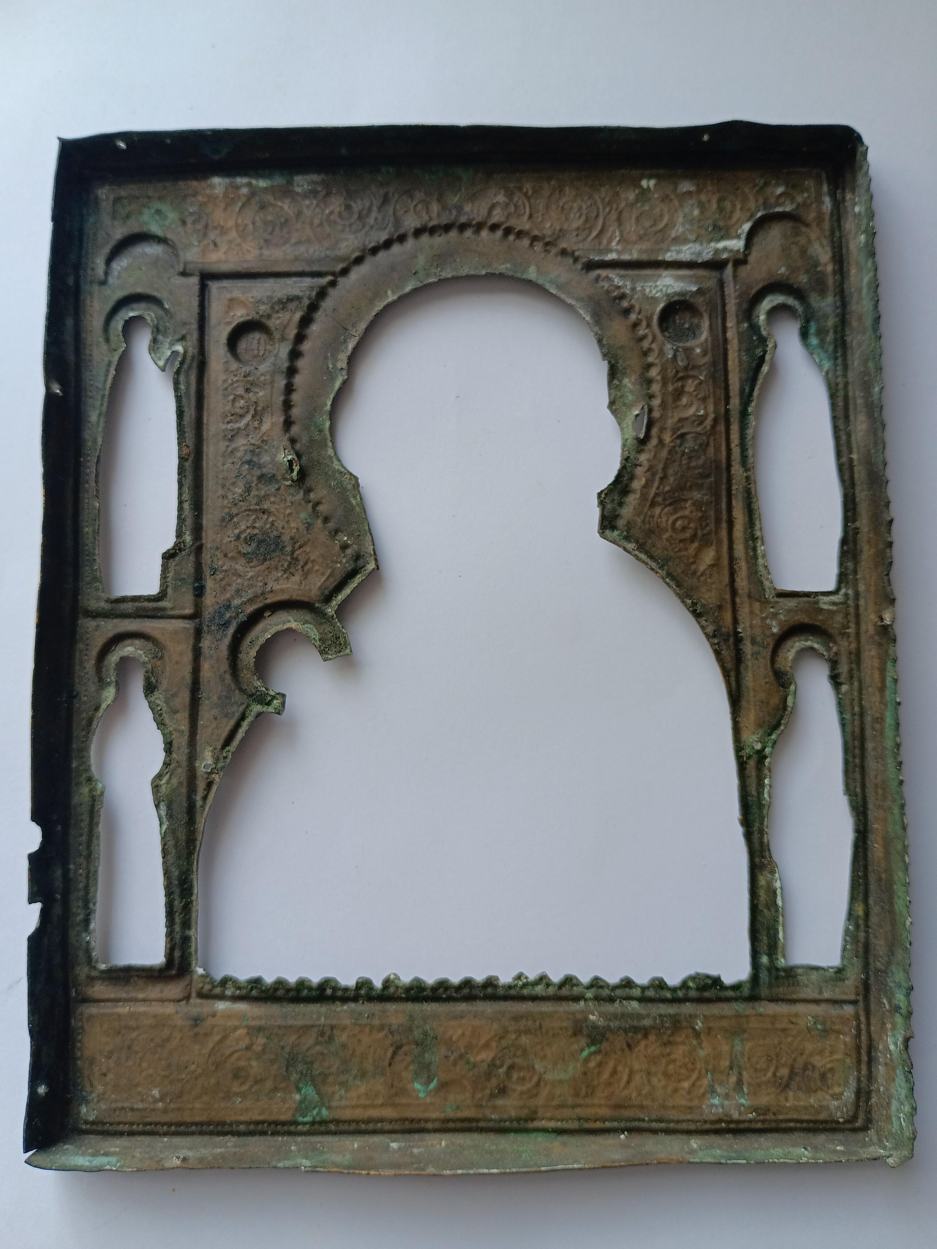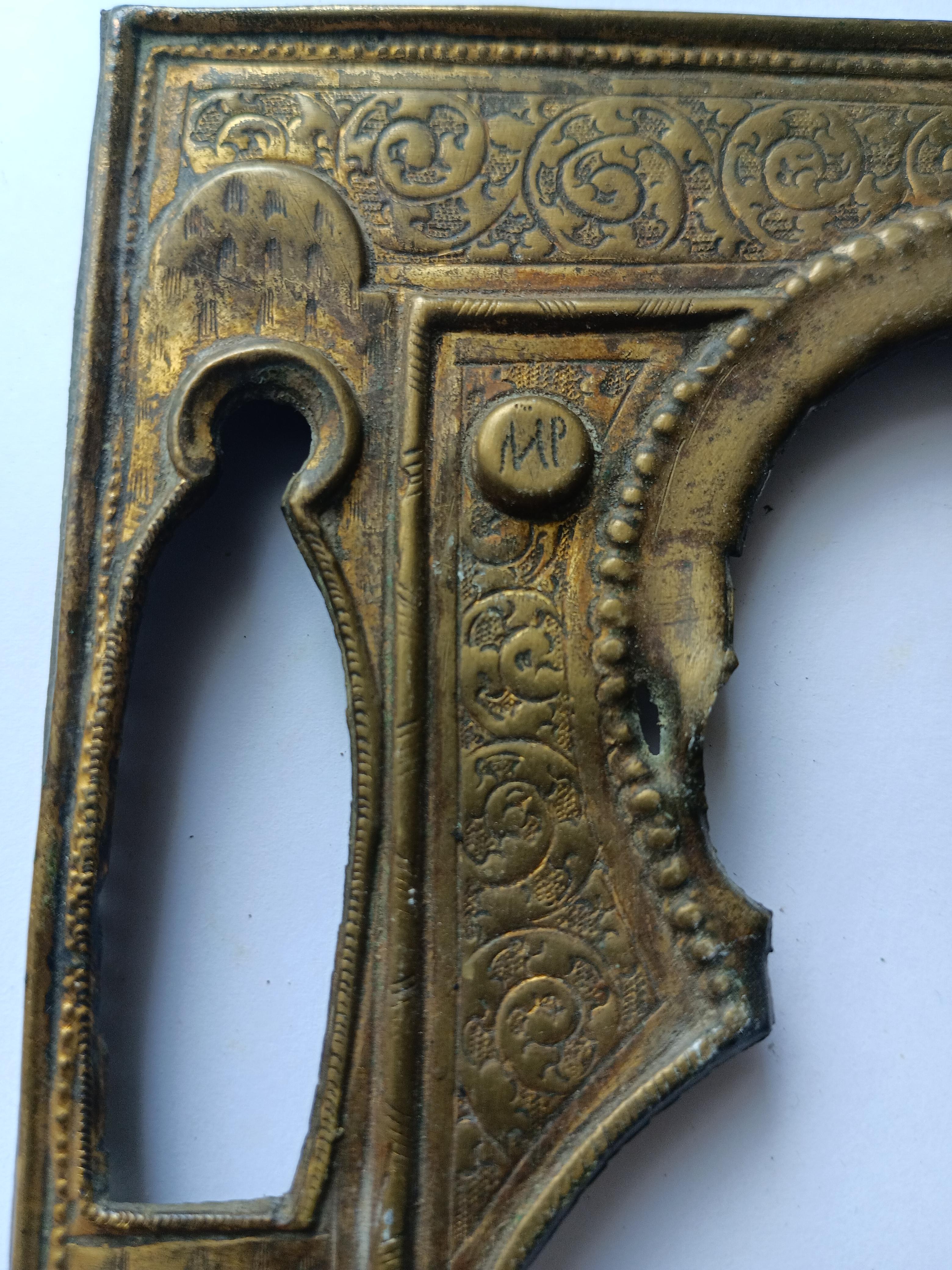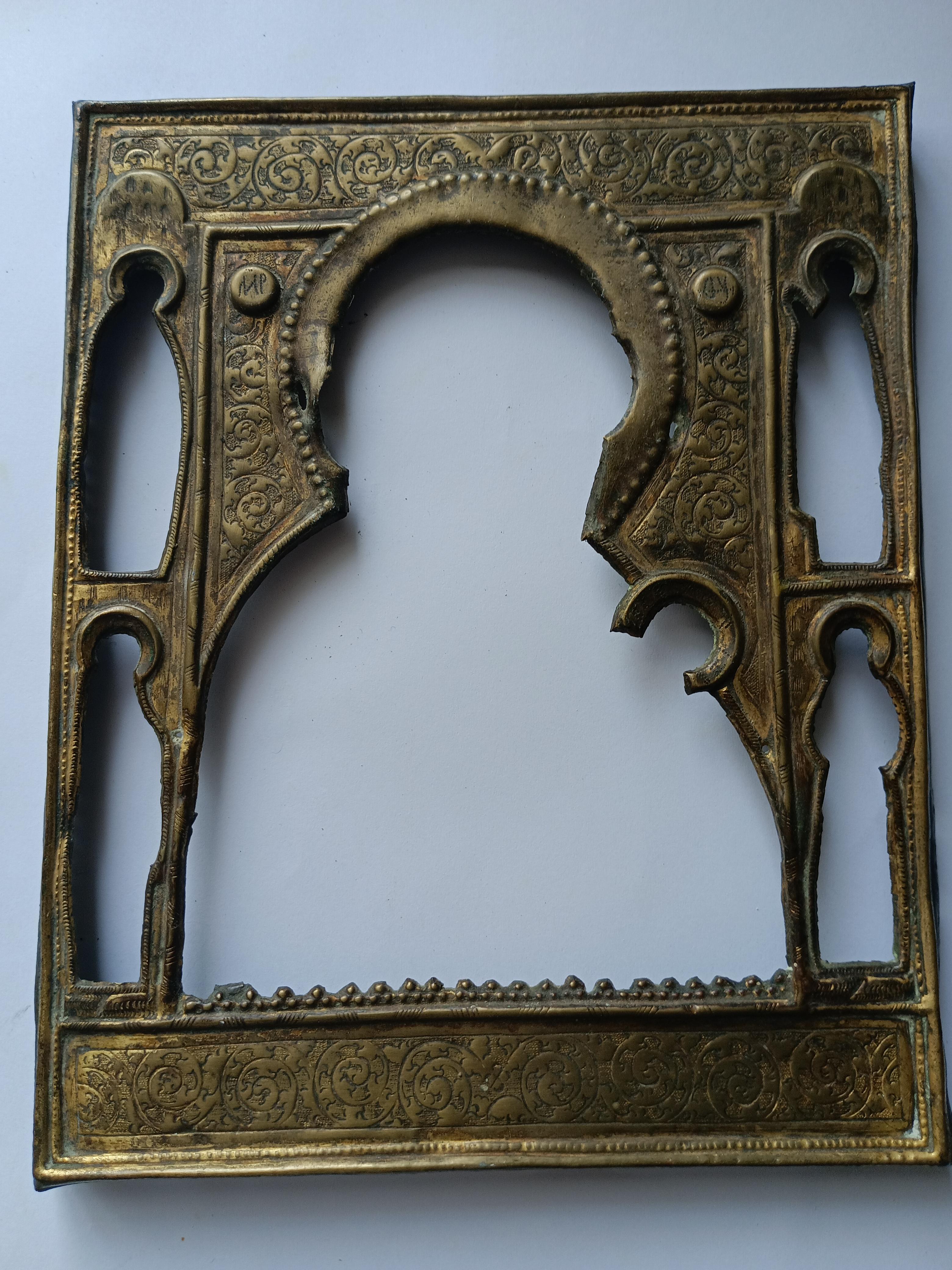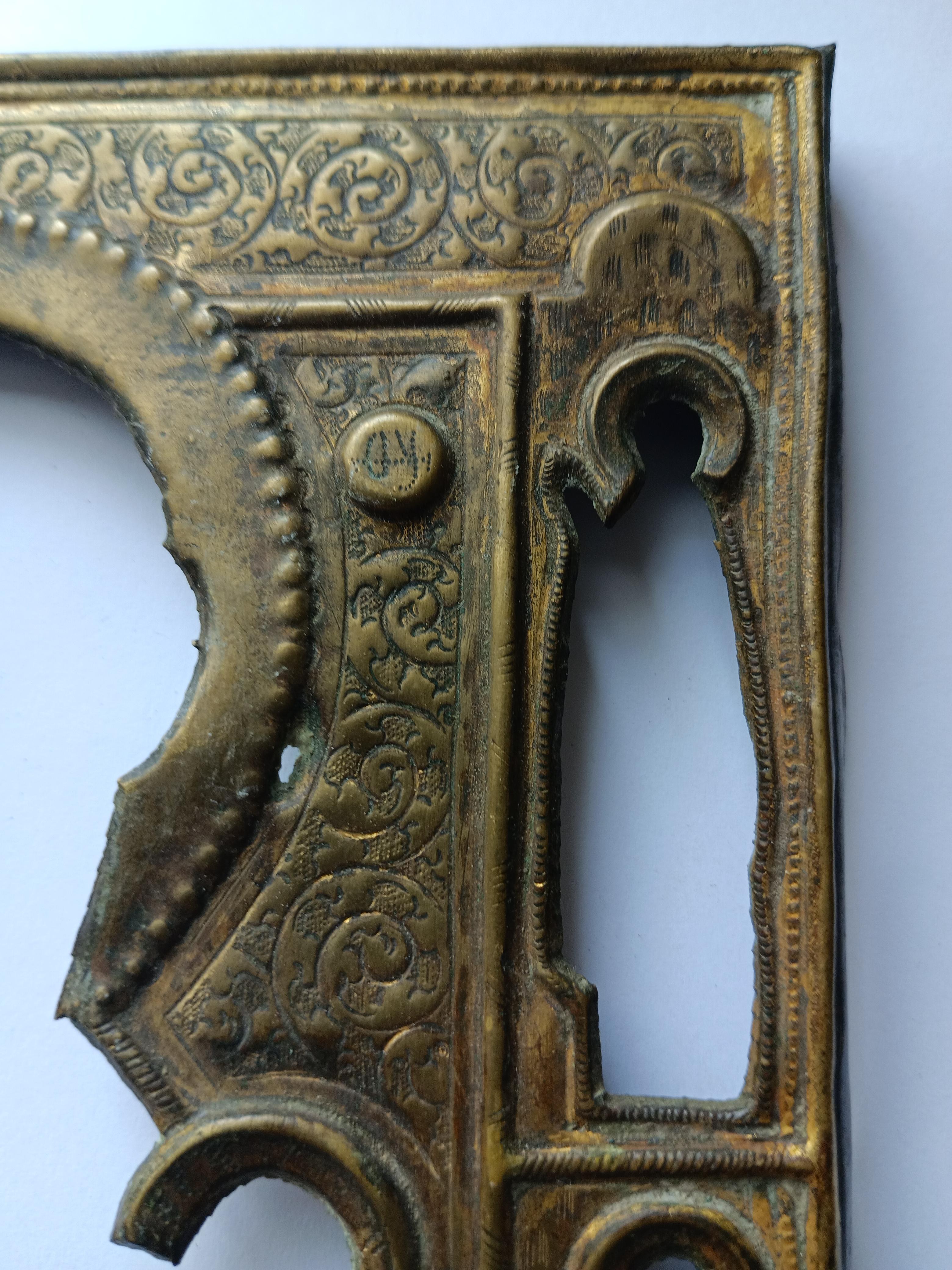 Доска под запись с кованым окладом. Доска 17,5*14 см, толщина 17 мм, вес 316 гр, очень твердая. Оклад кованый, жесткий, с золочением. Очень хорошей детализации и сохрана, без трещин. Вес оклада с венцом 133 гр.