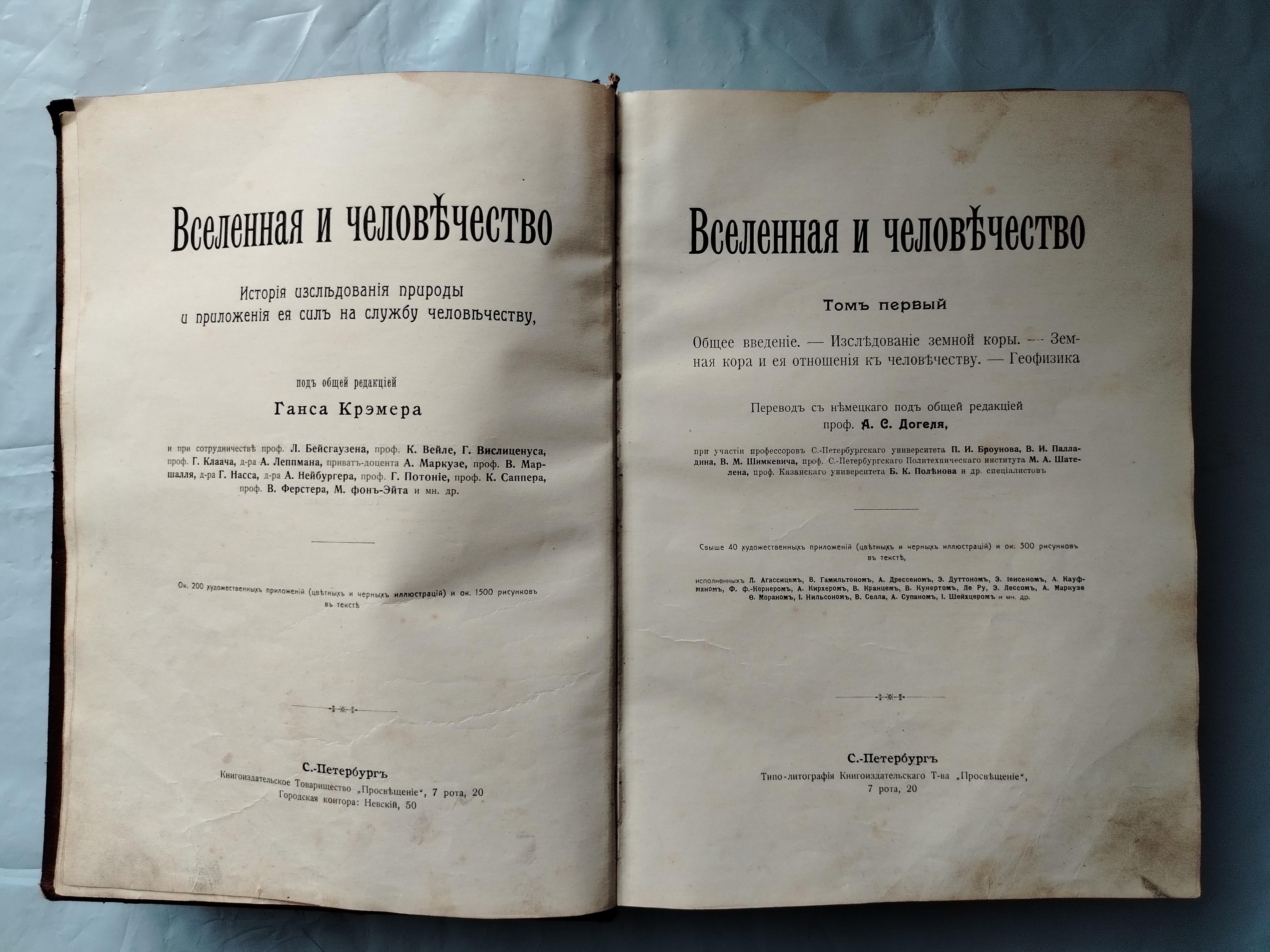 Энциклопедия " Вселенная и человечество". 1 том Издание образца 1896 г. Внутренне состояние хорошее. Обложка требует ремонта. Размер 28*20*5см, вес 2550 гр.