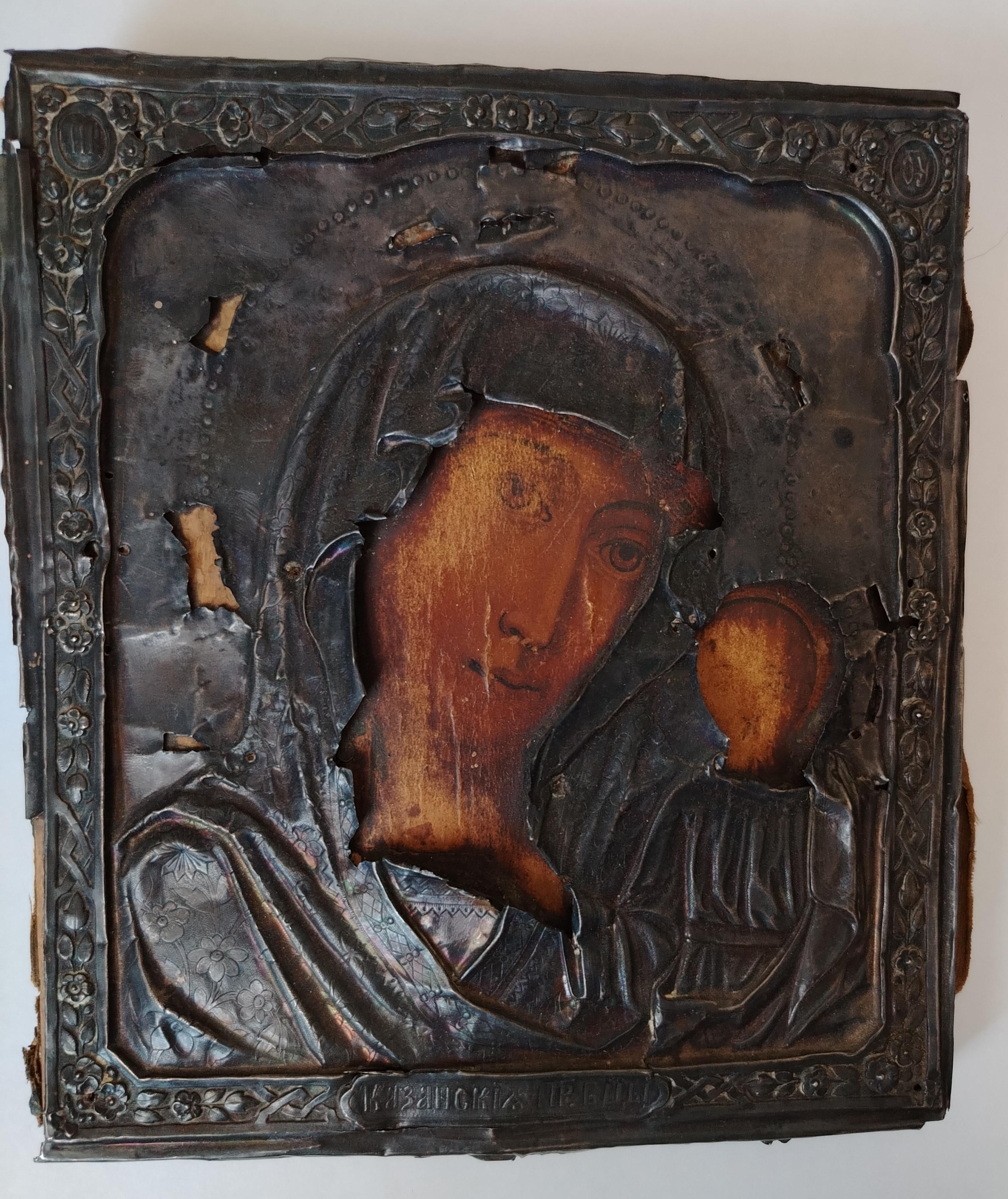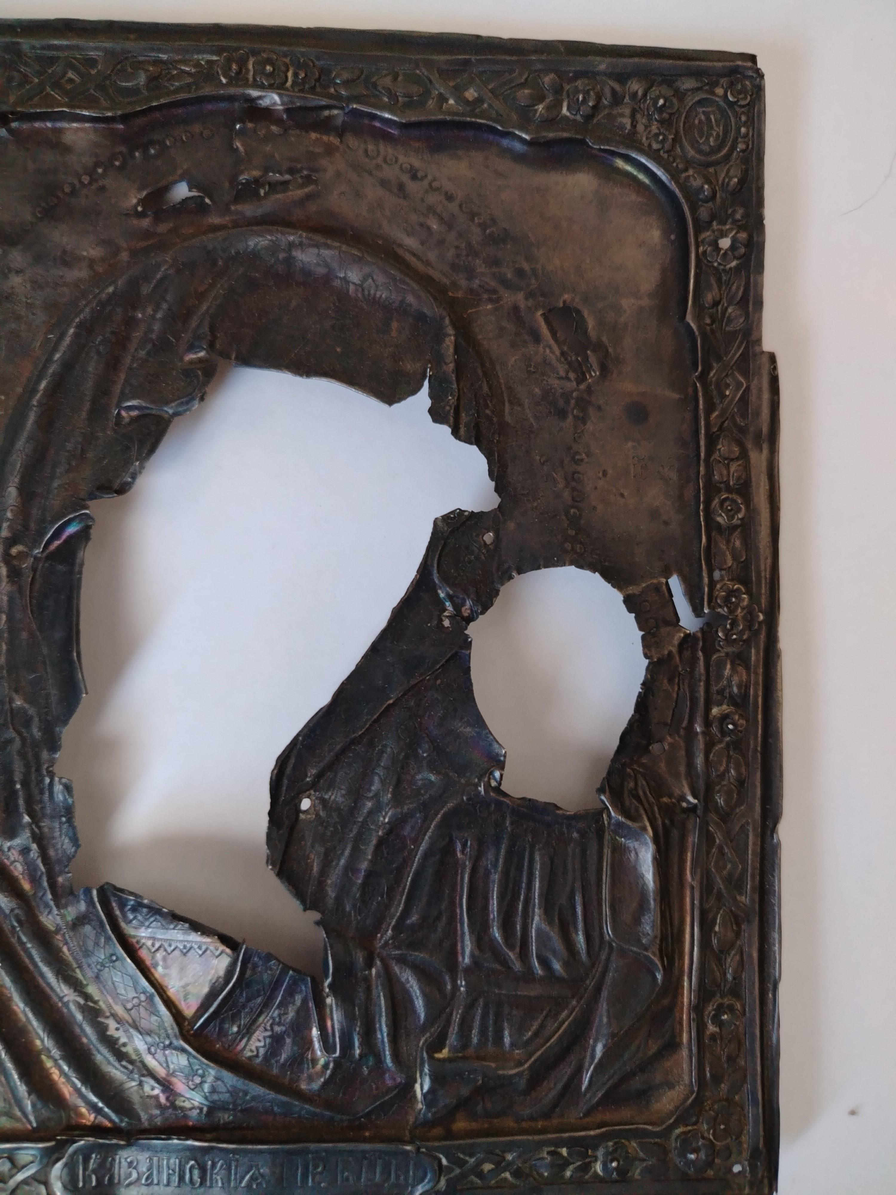 Икона "Казанская Богородица" 19*16,5 см В серебряном окладе, вес оклада 46 гр.