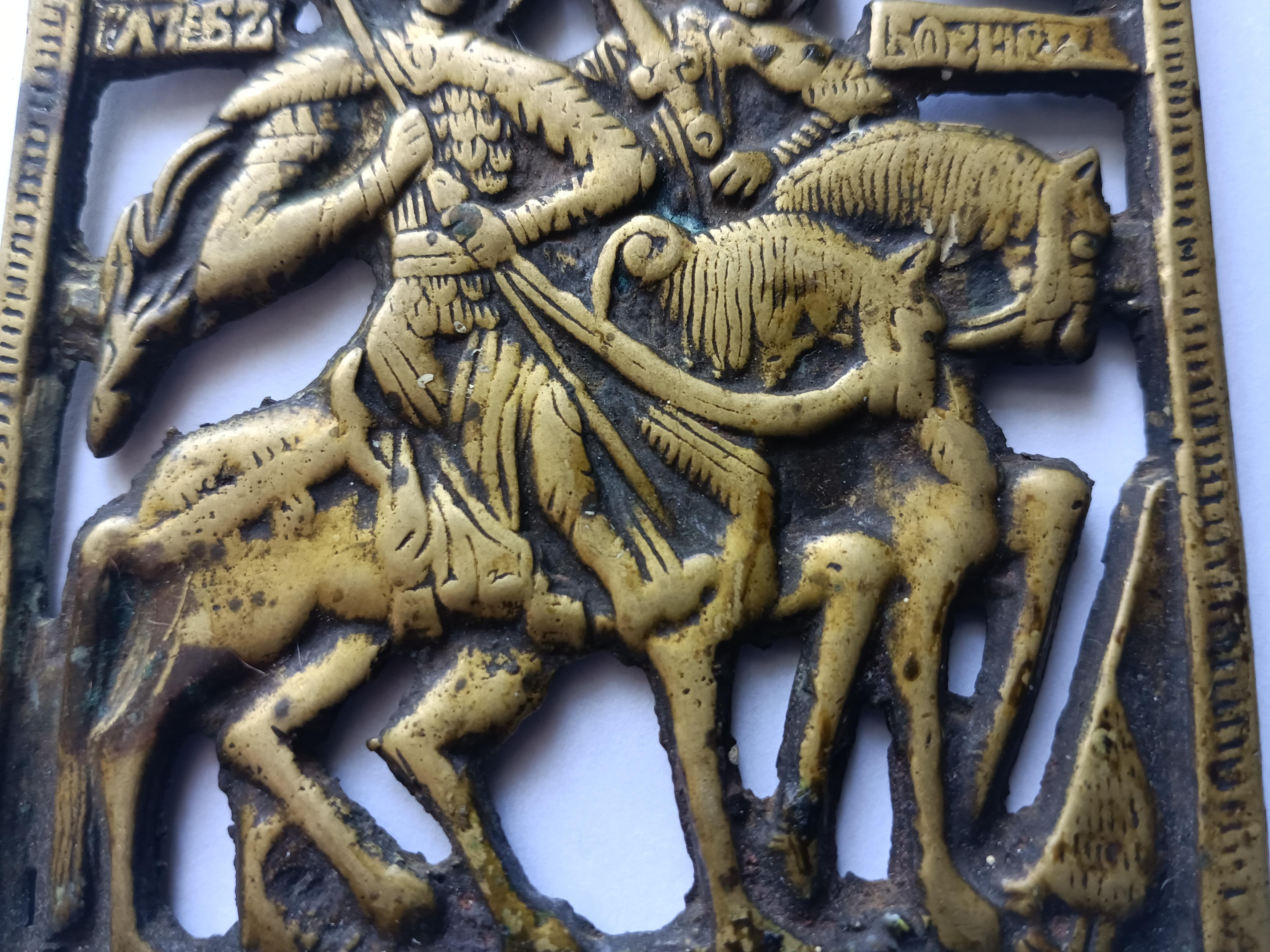 Икона литая "Борис и Глеб" 14*9 см Вес 183 гр.