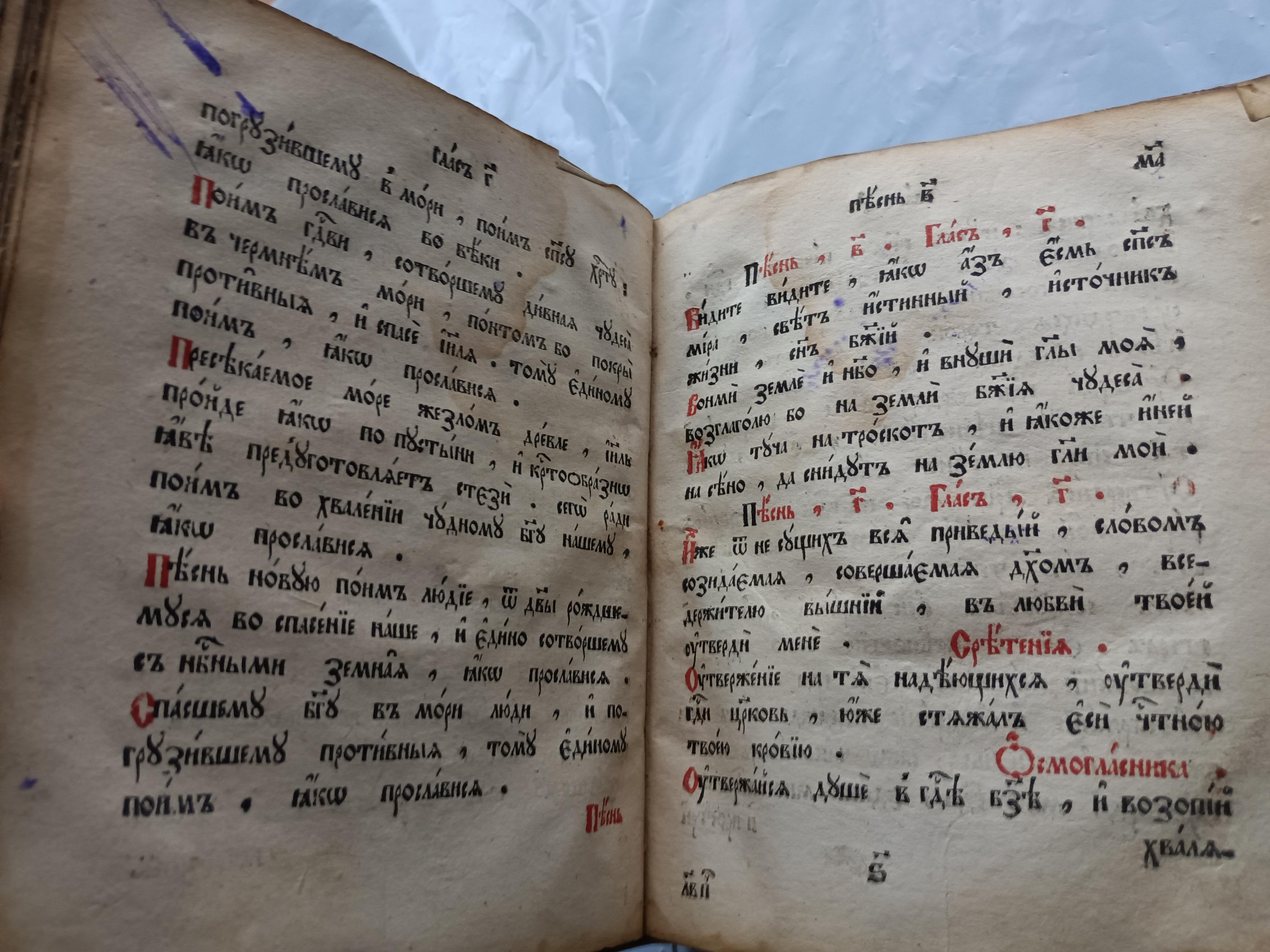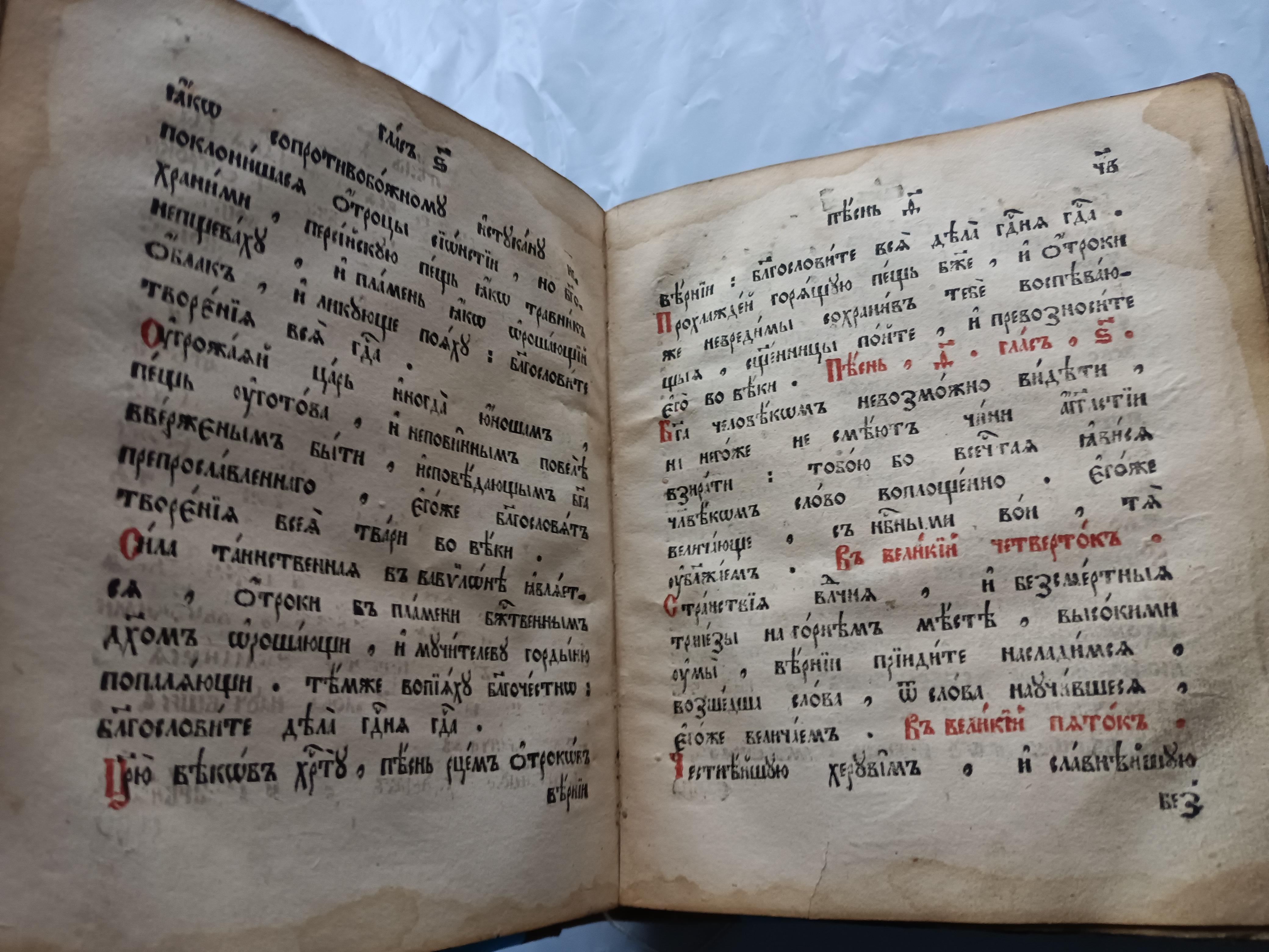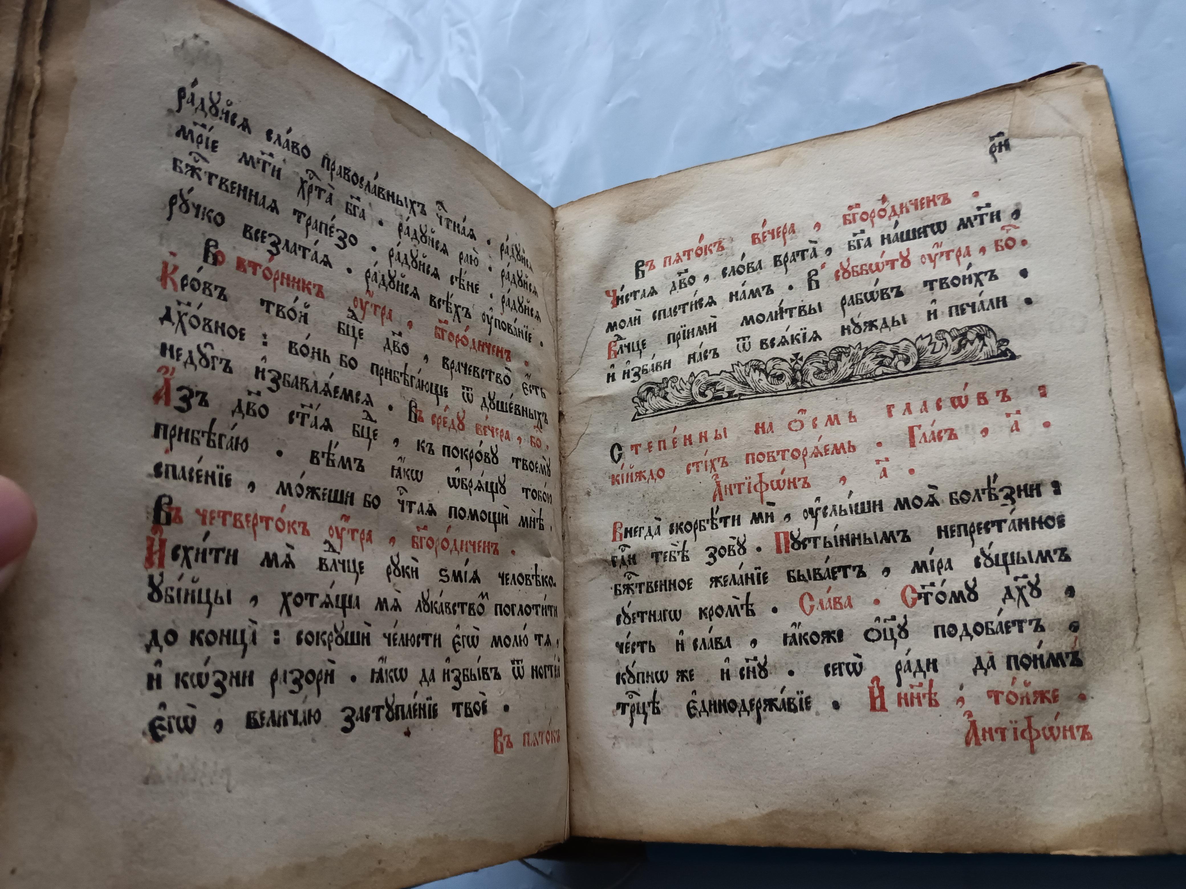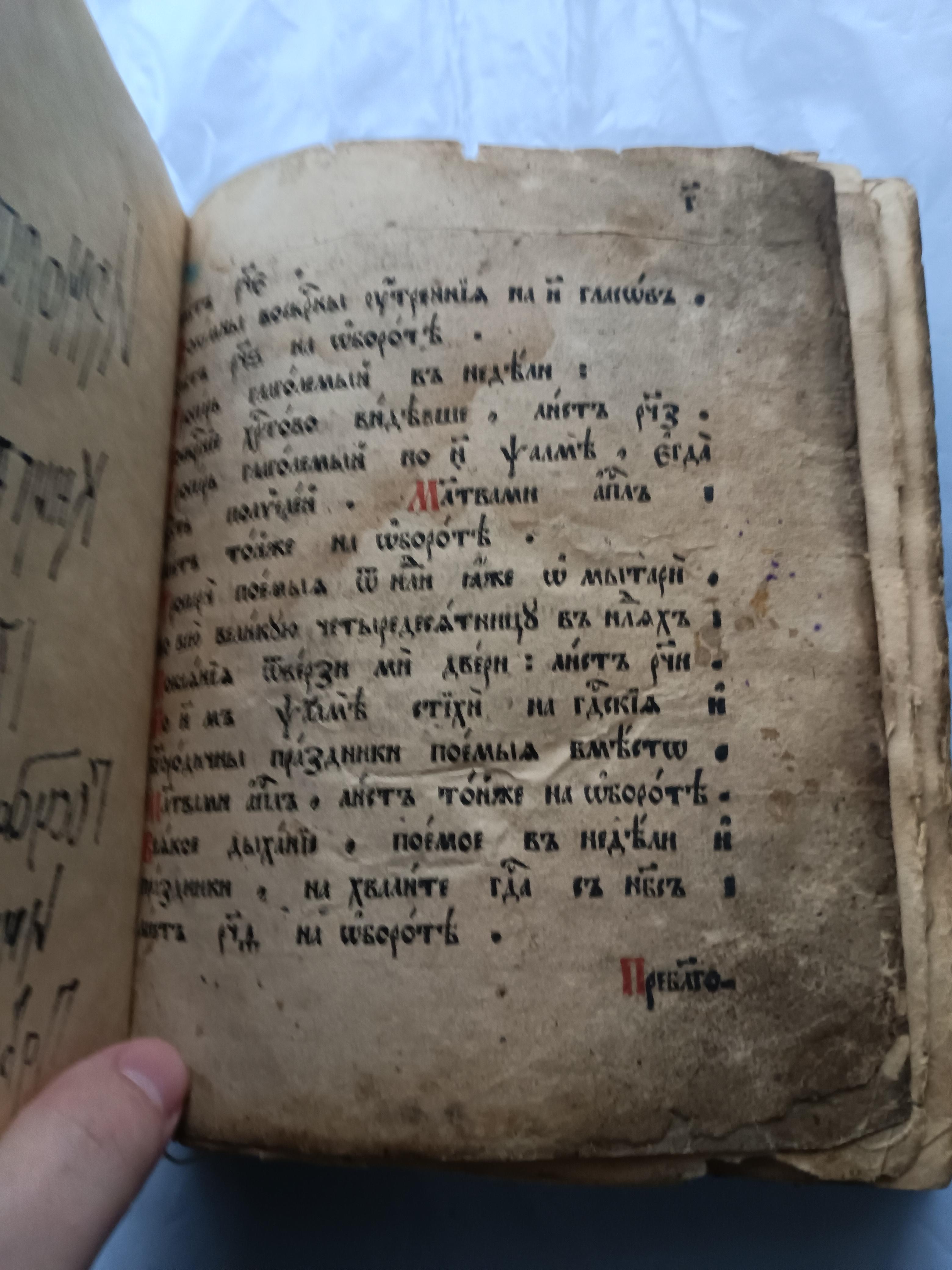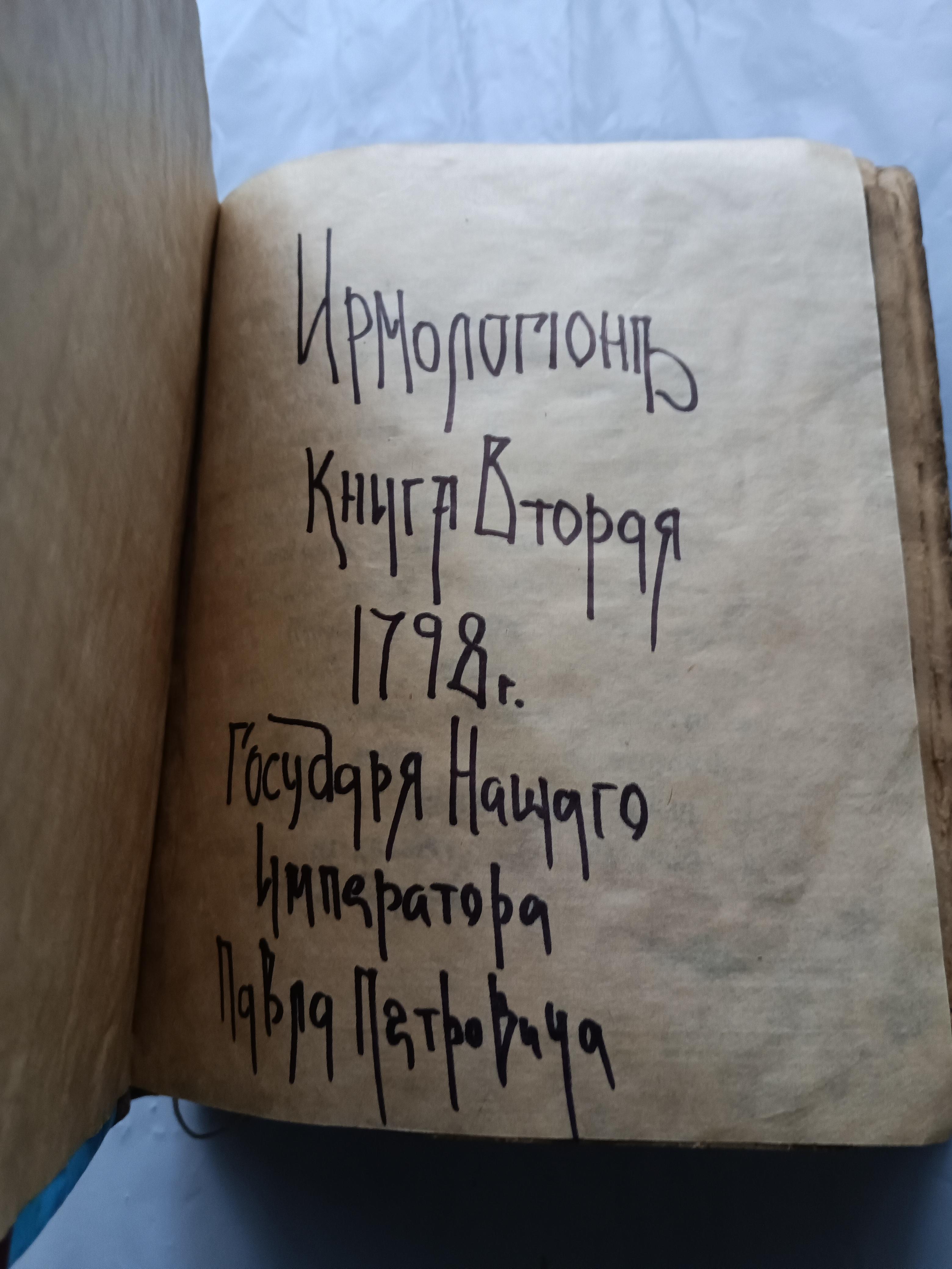 Ирмологий 1798 г. Размер 21*18*5 см Подписан восстановившим книгу священником отцом Константином Фиоктистовым.