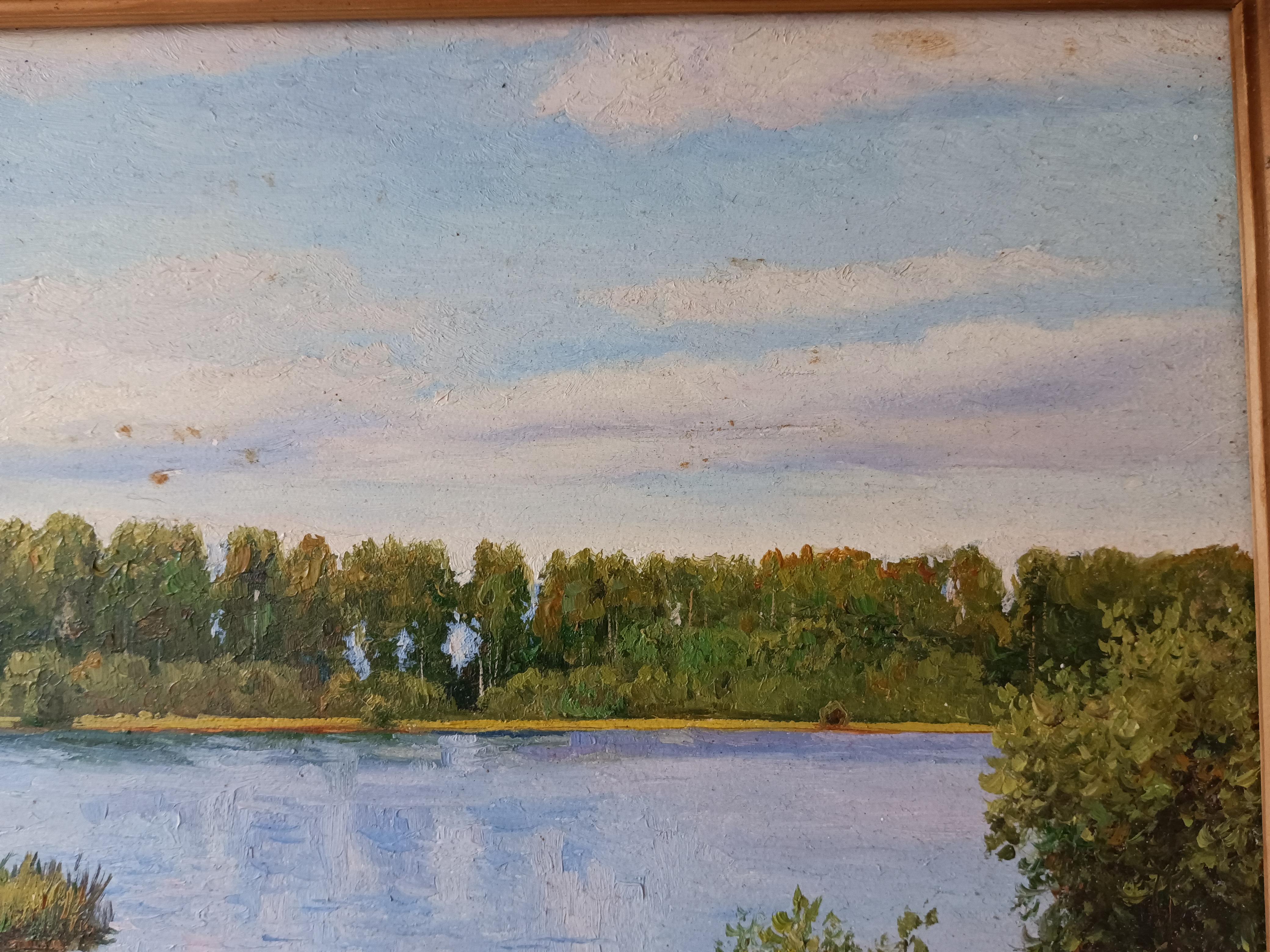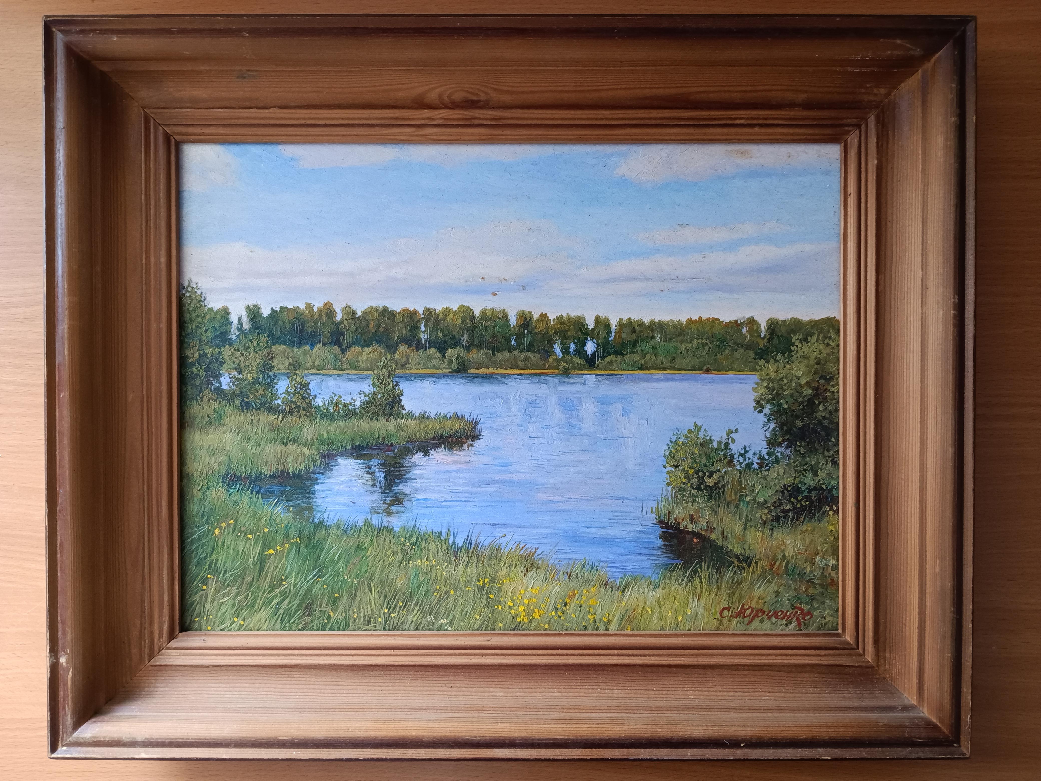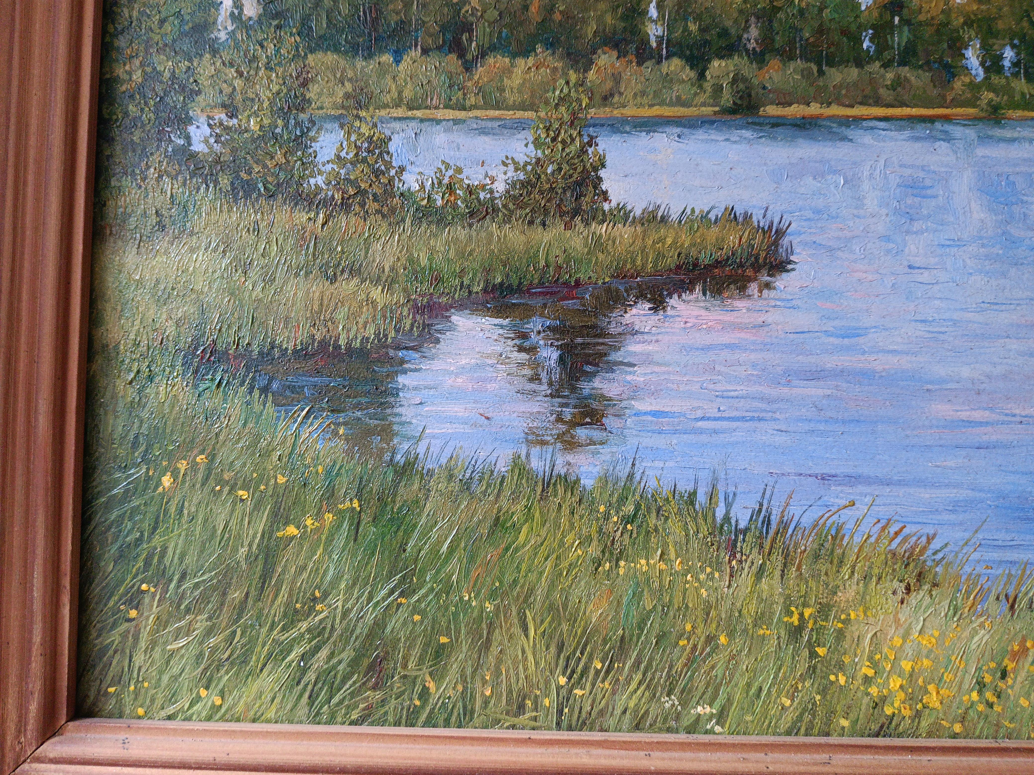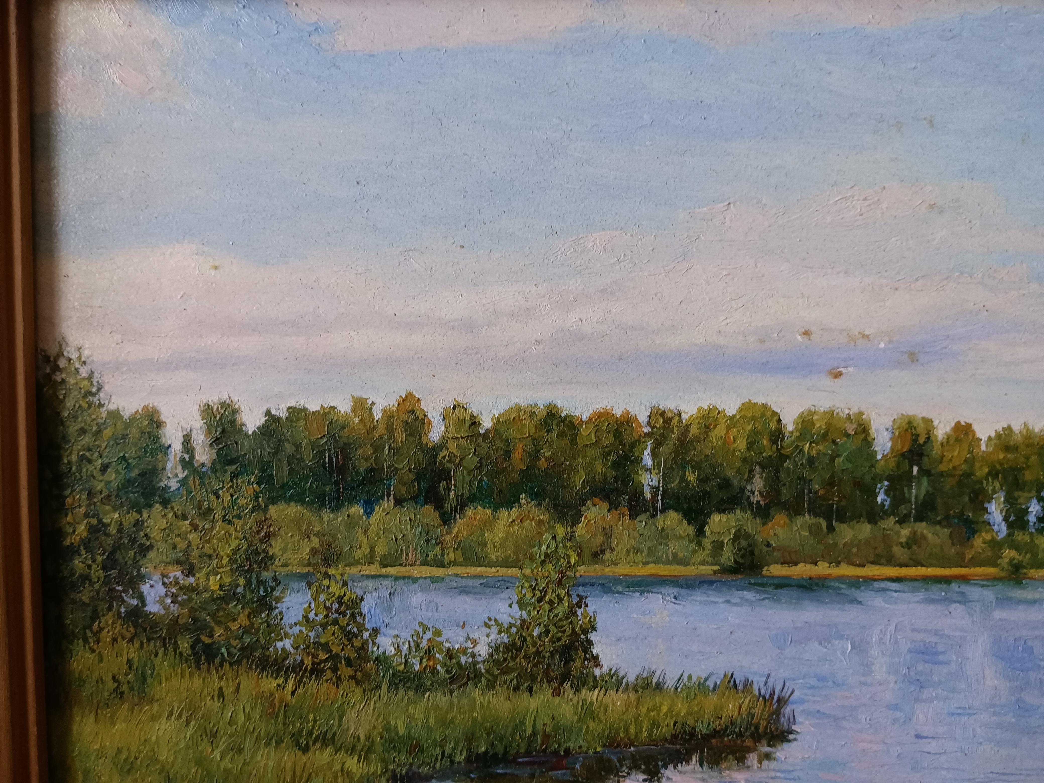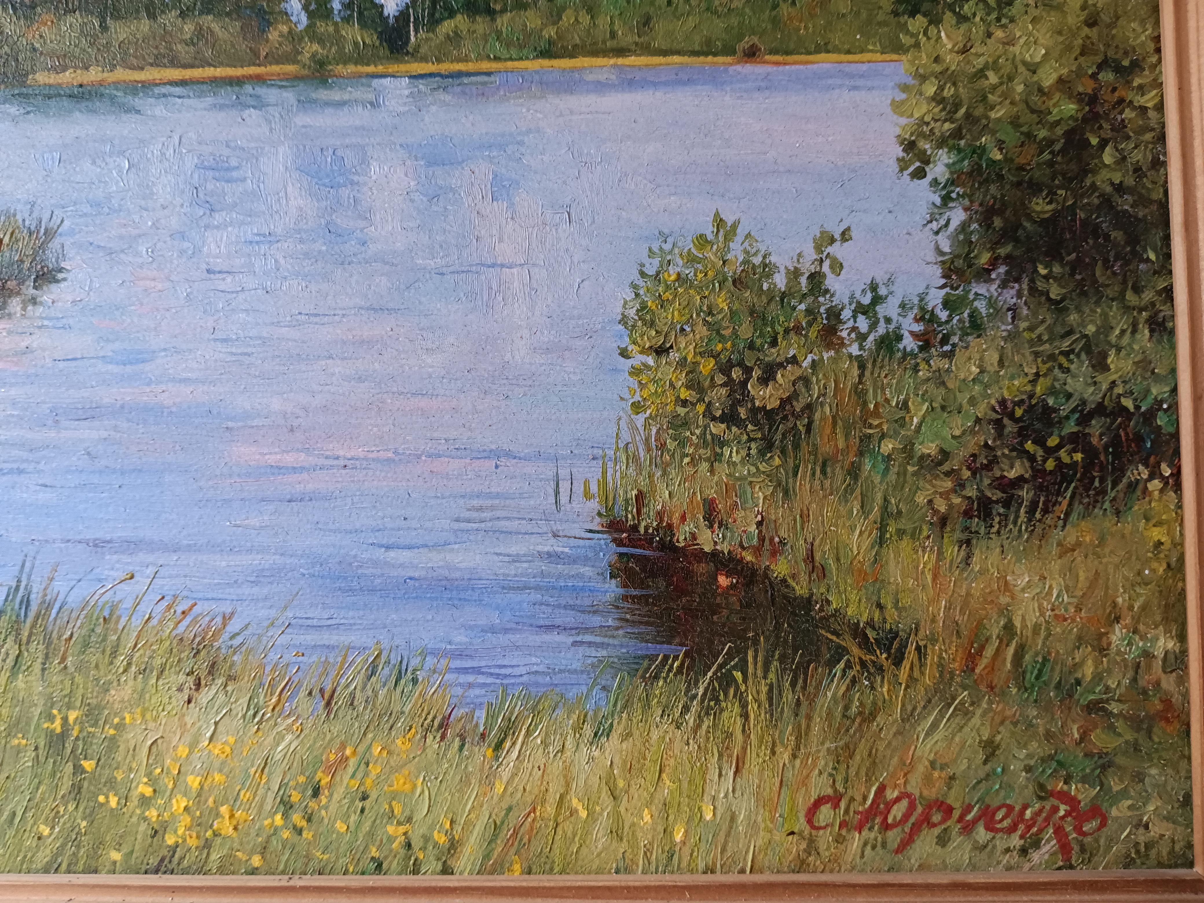 Юрченко Сергей "На берегу озера.Чернцы" 2003 г. Размер работы 40*30 см. Размер по раме 51*41 см Сергей Васильевич родился в 1956г. в Таджикистане в городе Ленинабад ( ныне Худжанд). Окончил художественно-графический факультет педагогического института Ленинабада. По окончании работал реставратором в Ленинабадском отделении Художественного Фонда СССР, главным художником мастерской дизайна научно- производственного предприятия. В 1995 г. всей семьей переехали в г. Иваново, где продолжил активную творческую и выставочную деятельность. Излюбленным жанром художника является пейзаж, излюбленной техникой-масляная живопись. Сам художник считает, что своим творчеством он утверждает жизнеспособность и актуальность реализма, обладающего неограниченными возможностями художественного и образного отражения мира.