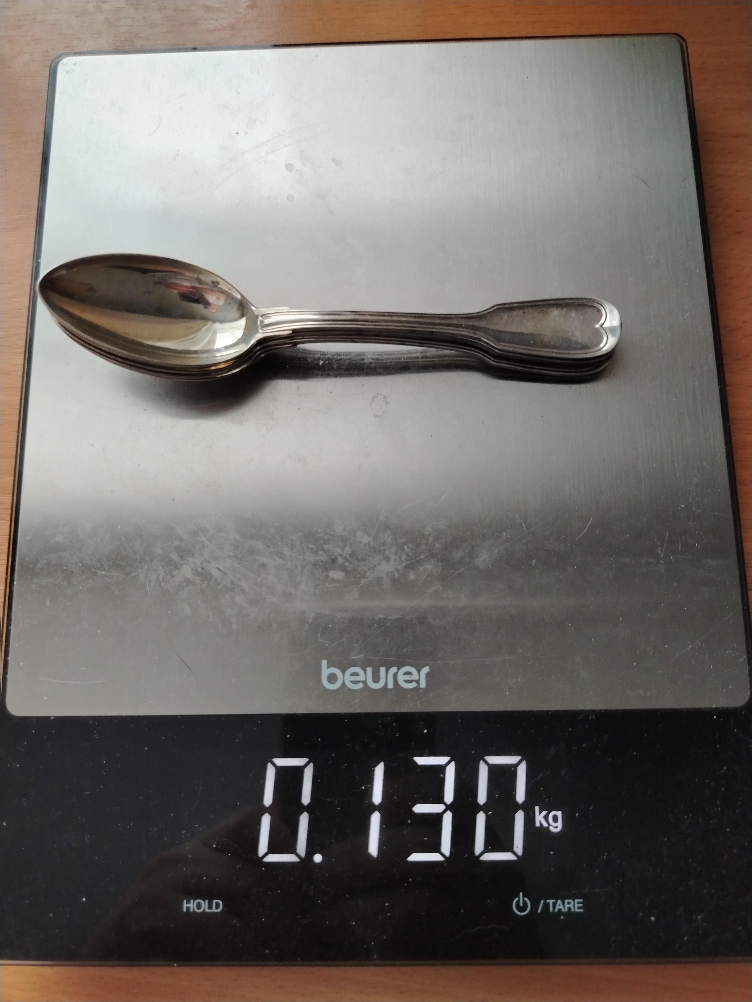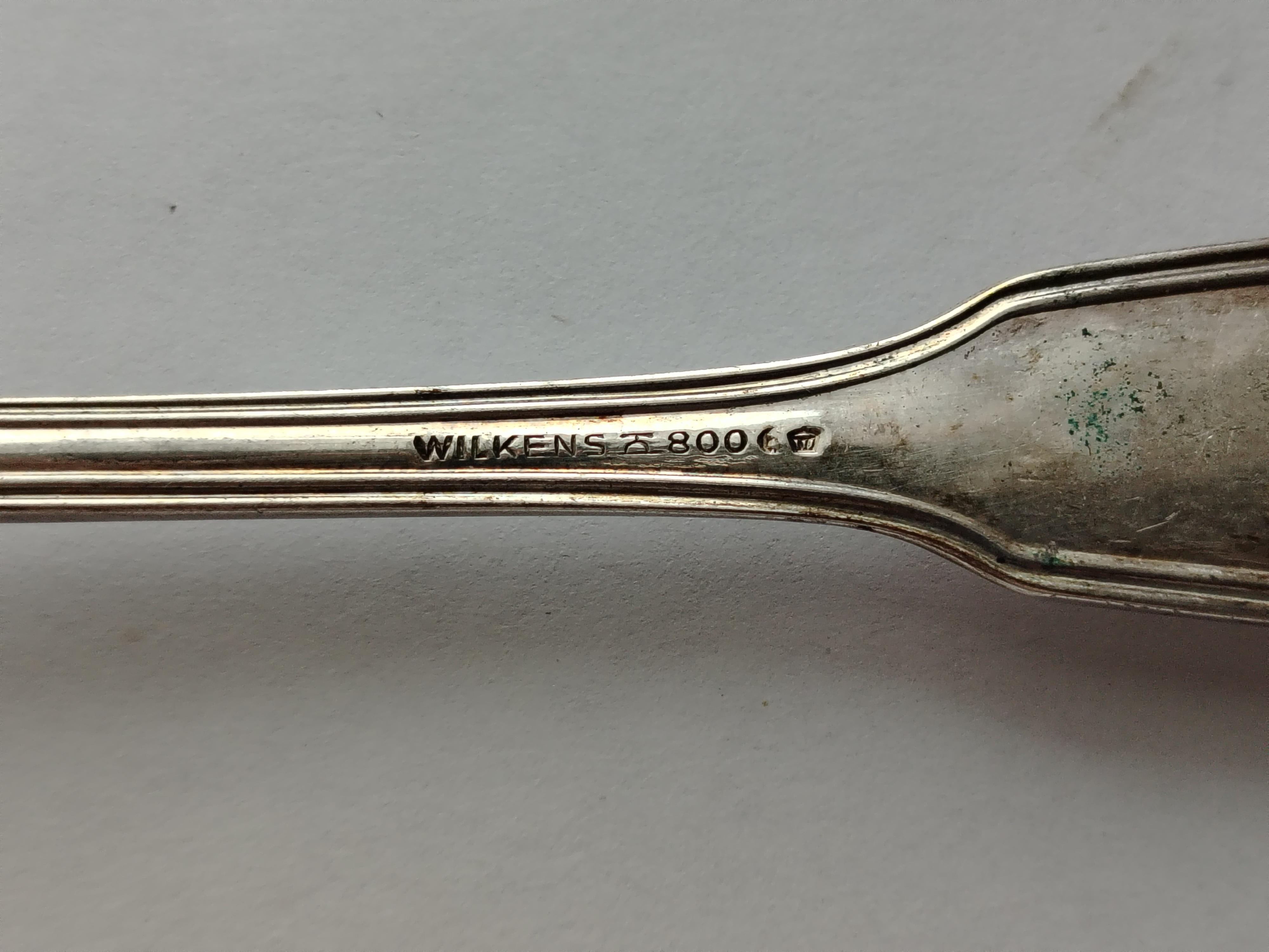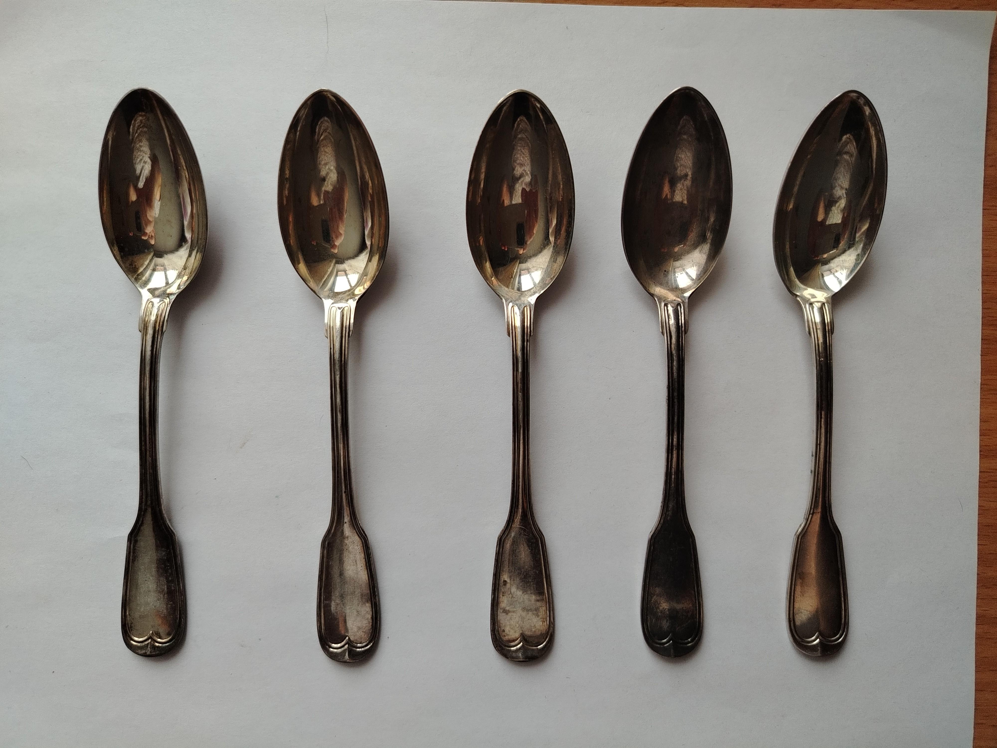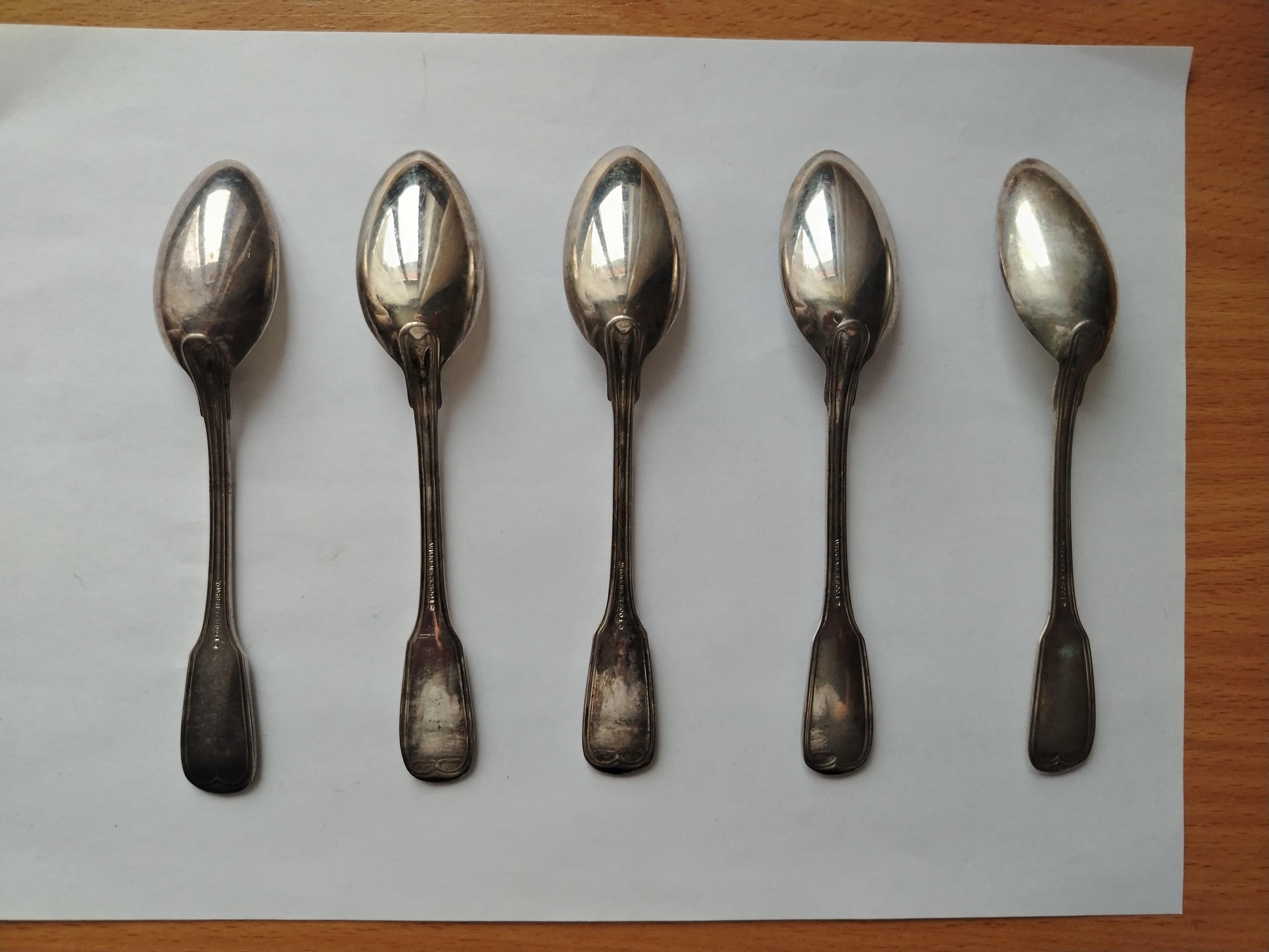 Комплект чайных серебряных ложек 5 штук 800 проба, фирма Wilkens Германия Общий вес 130 гр Без использования
