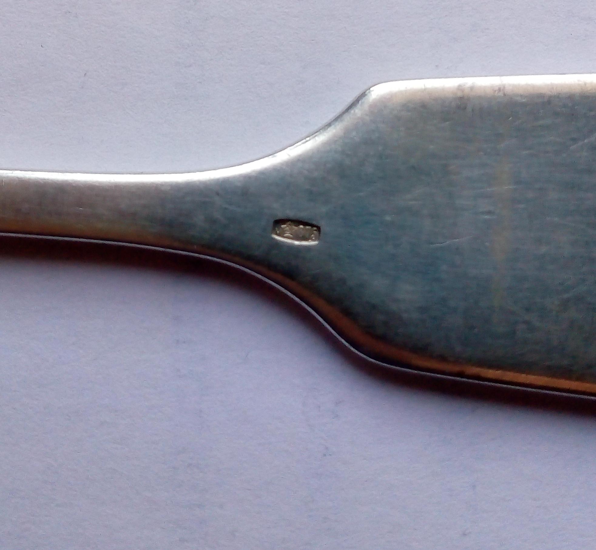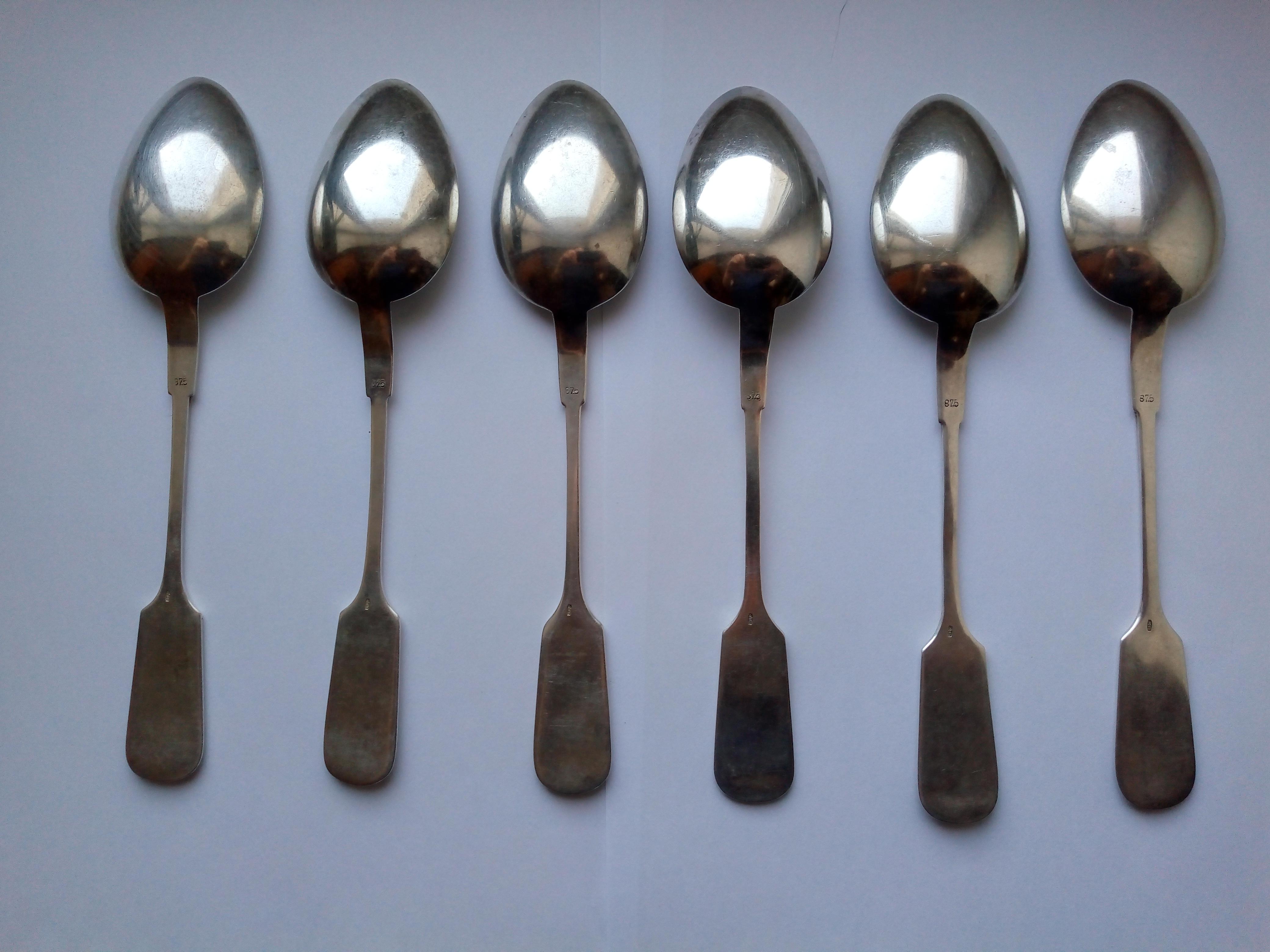 Комплект серебряных столовых ложек в футляре. 875 проба. Общий вес 414 гр.
