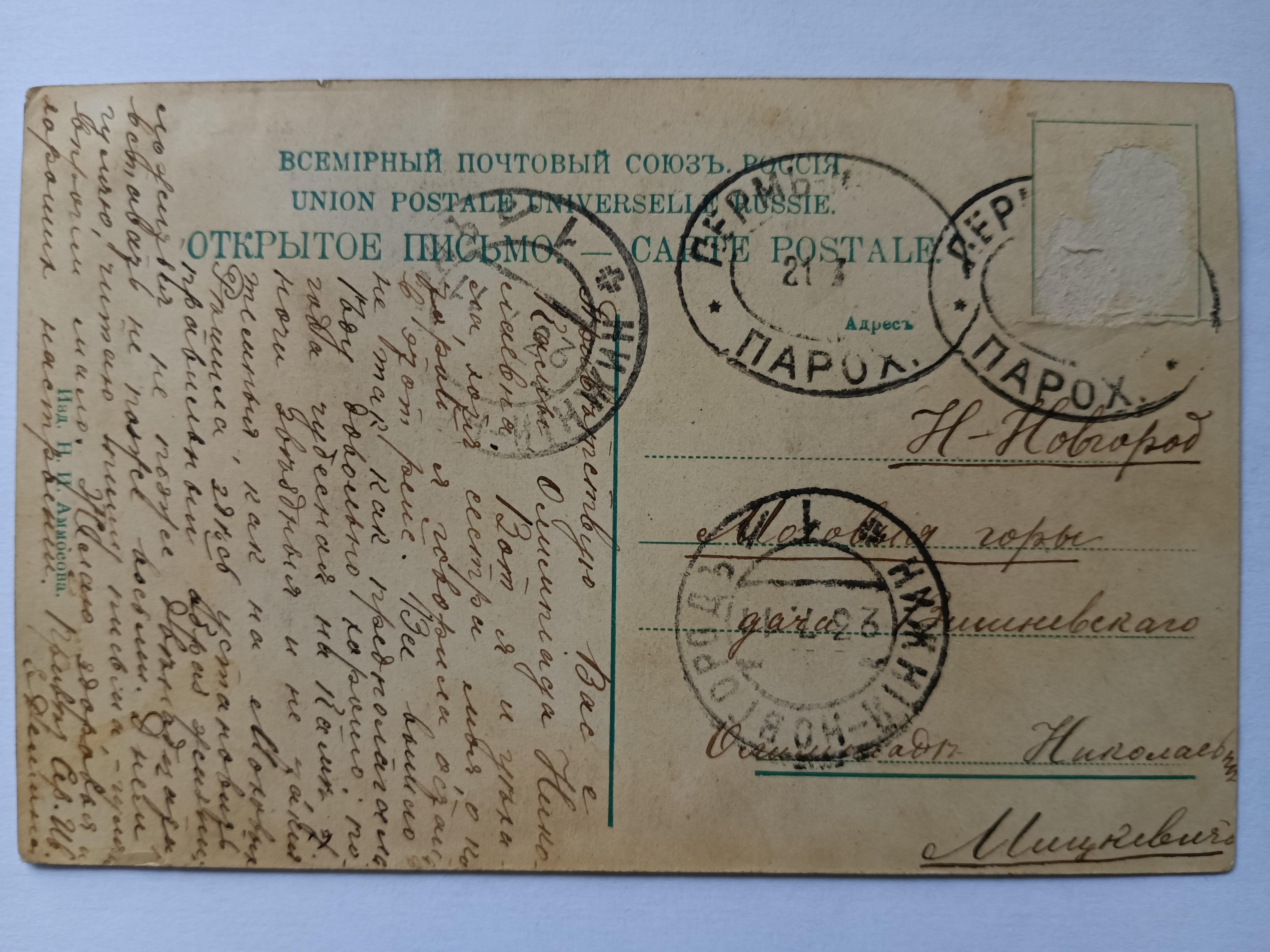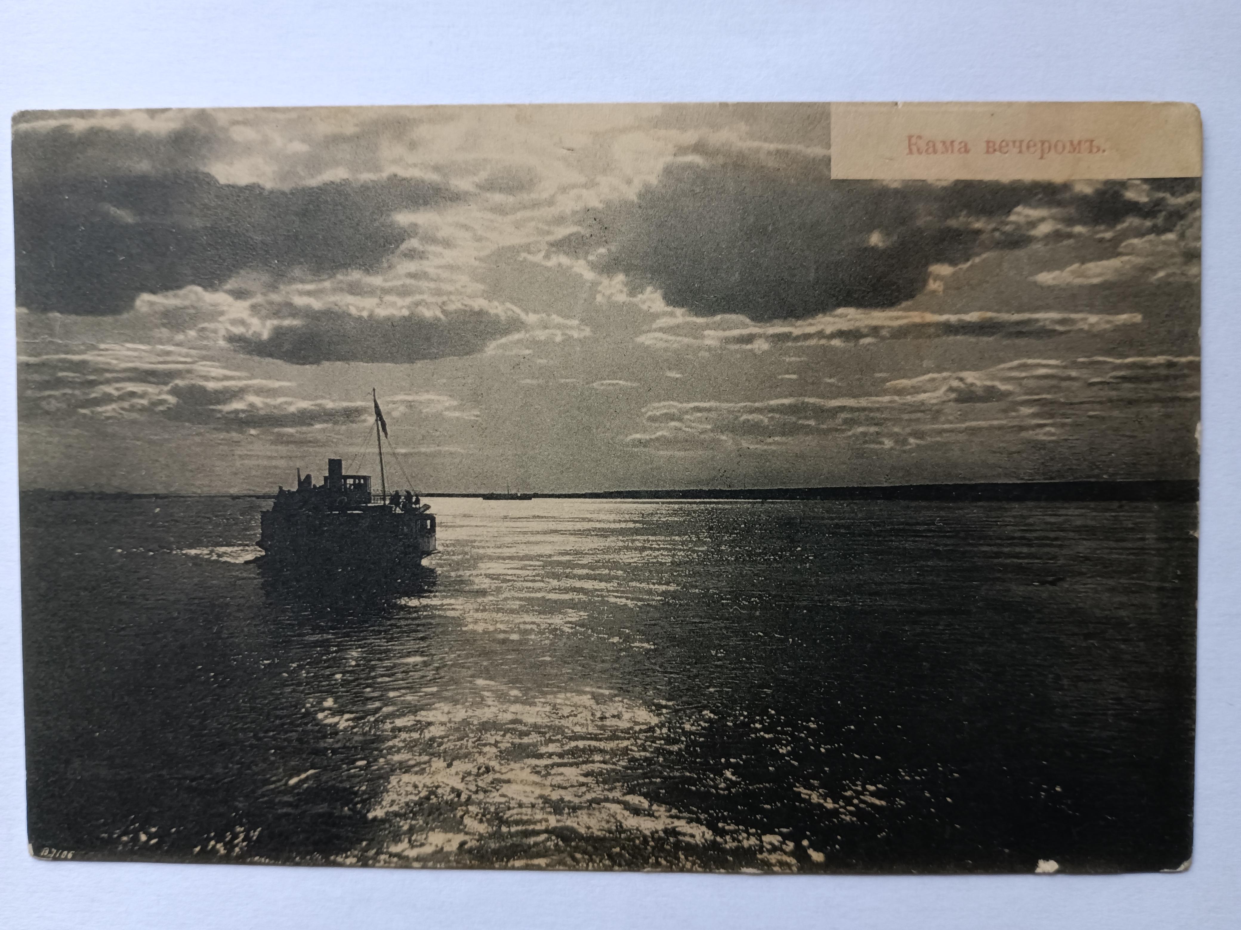 Открытка антикварная. Кама вечером