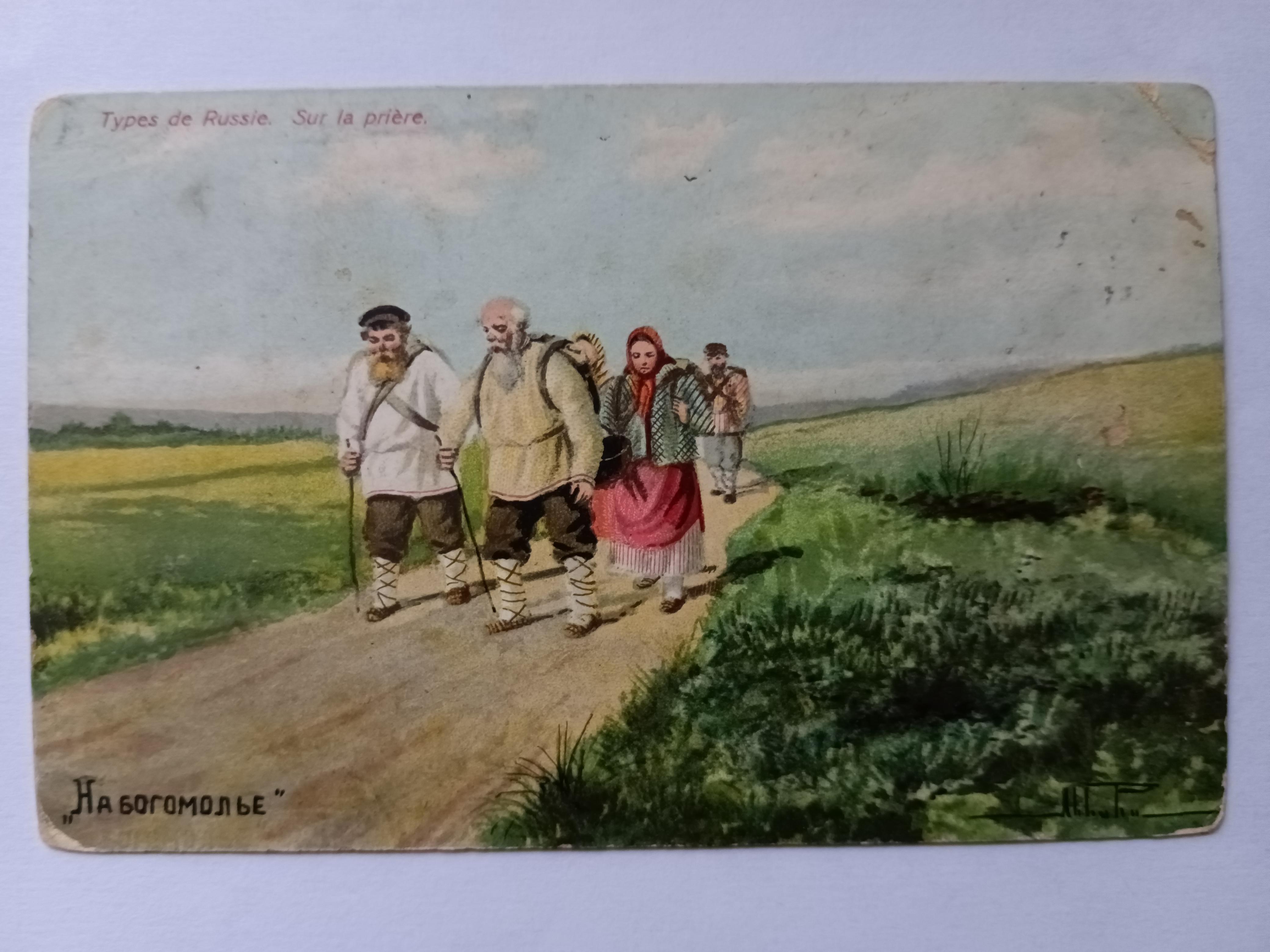 Открытка антикварная "На богомолье"