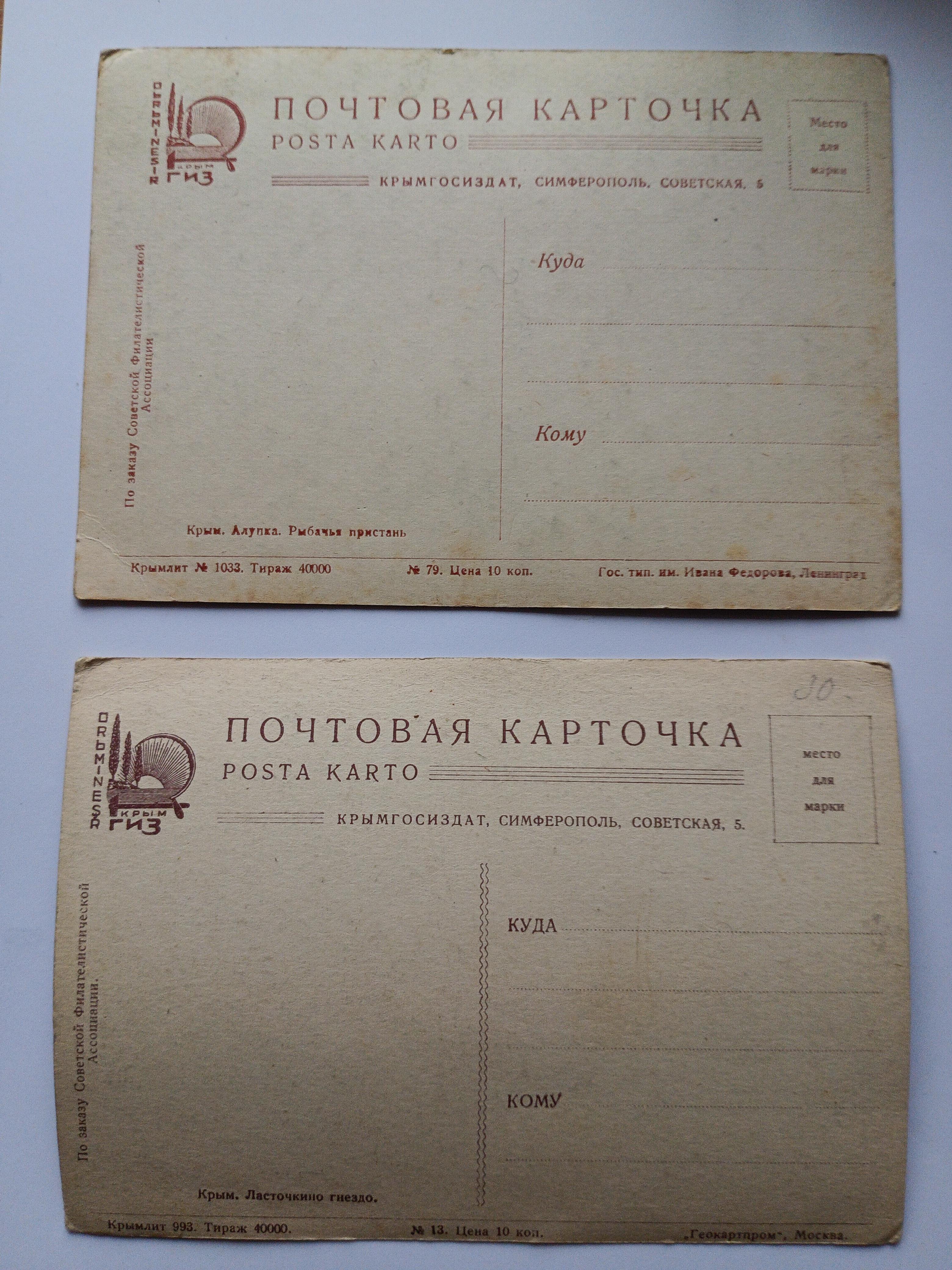 Открытки винтажные видовые чистые 8 штук