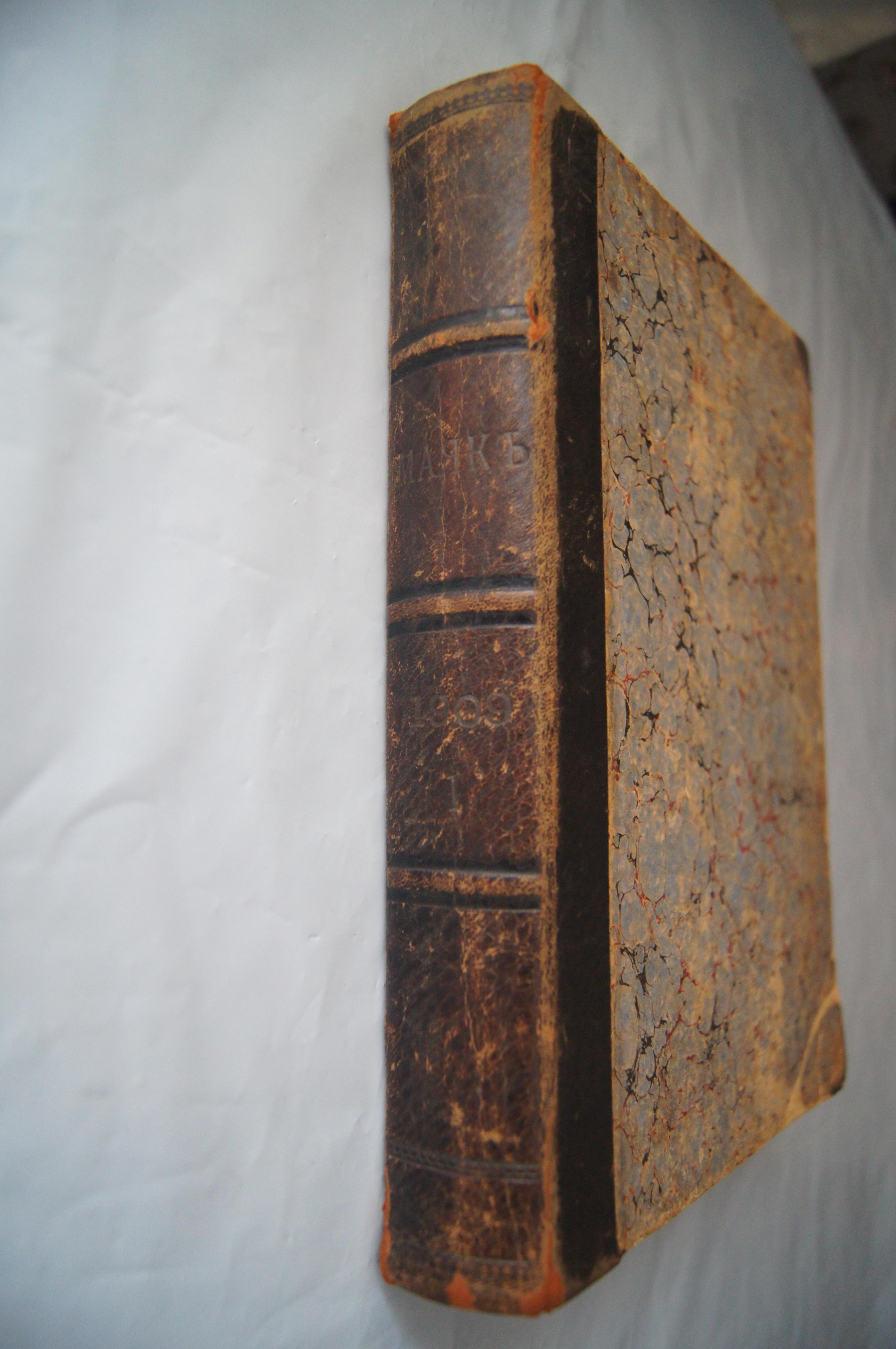 Сборник детских журналов Маяк за 1909 г Номера 1-6, страницы все. В родной полу-кожаной обложке.