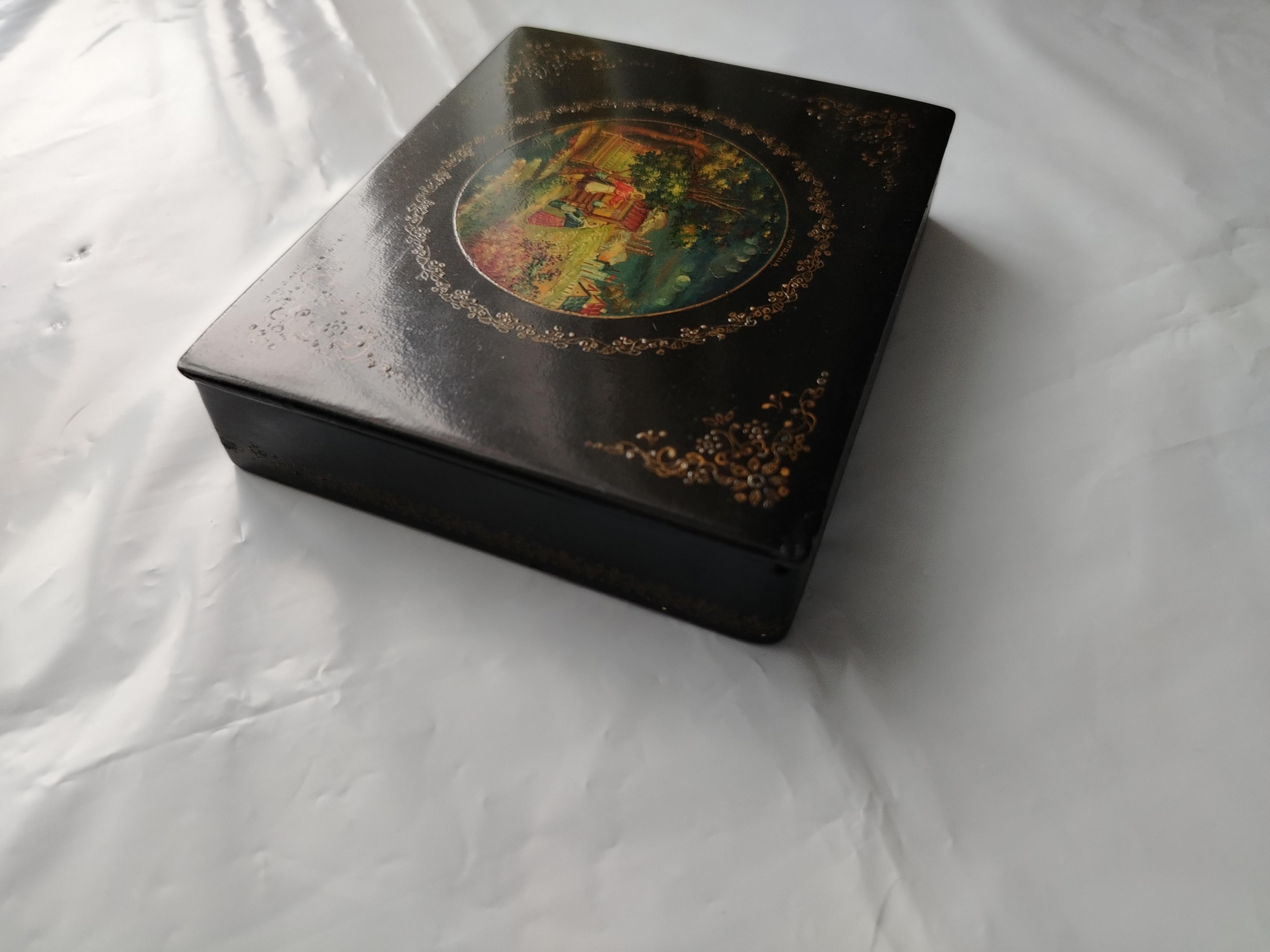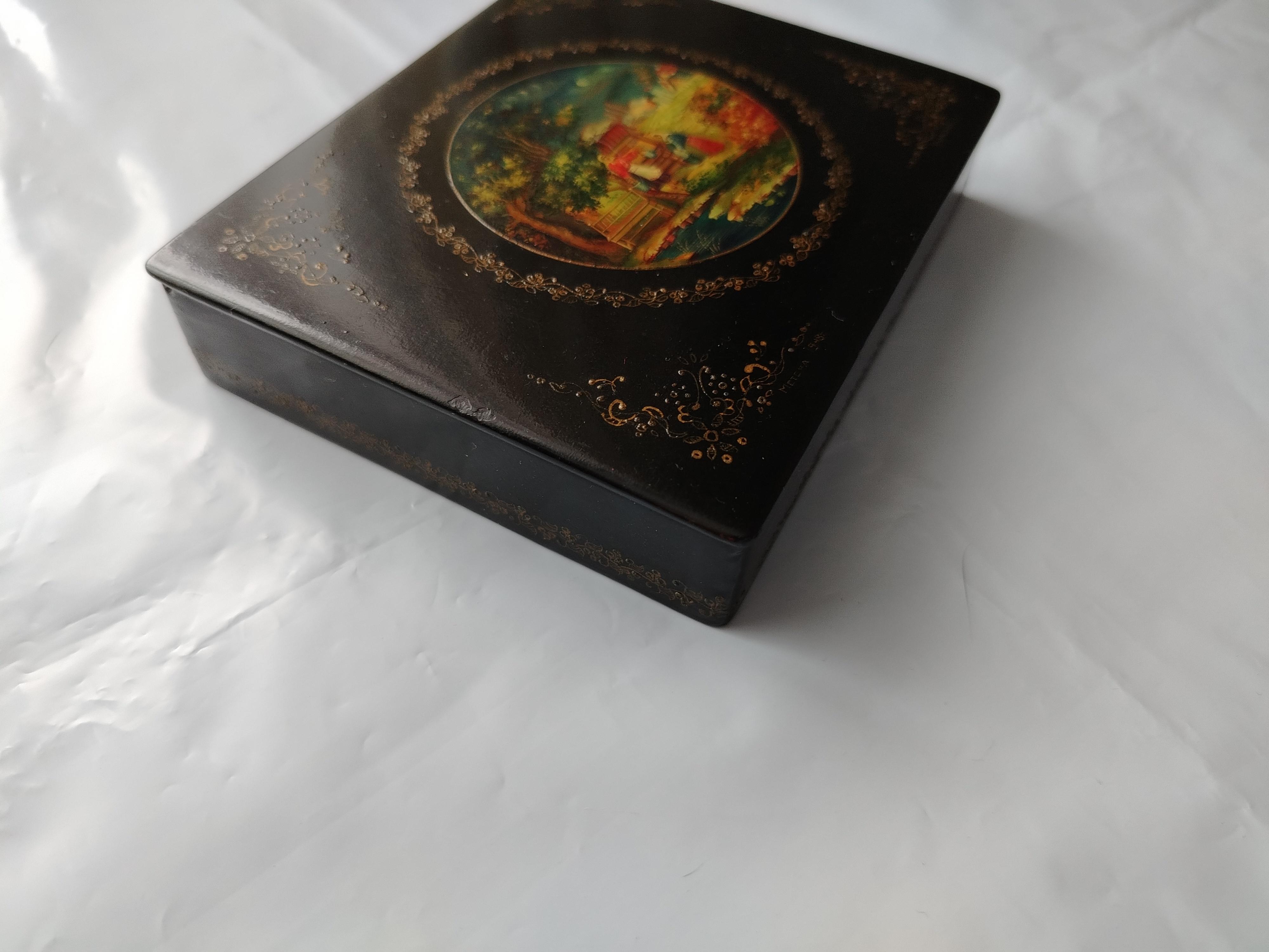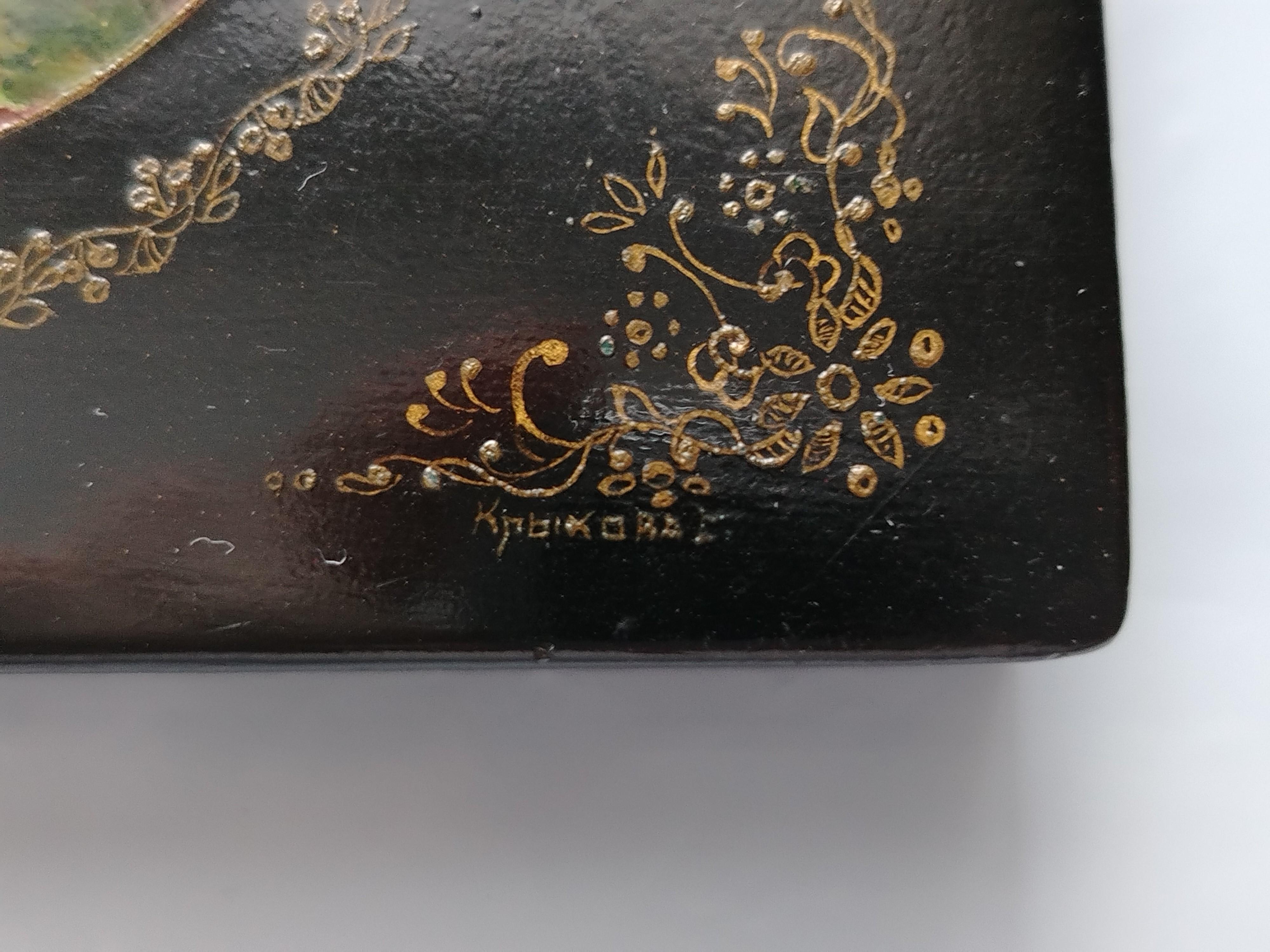 Шкатулка Мстера 1948 г "У колодца,"исполнитель Крыкова Размер 12,5*10*2,5 см