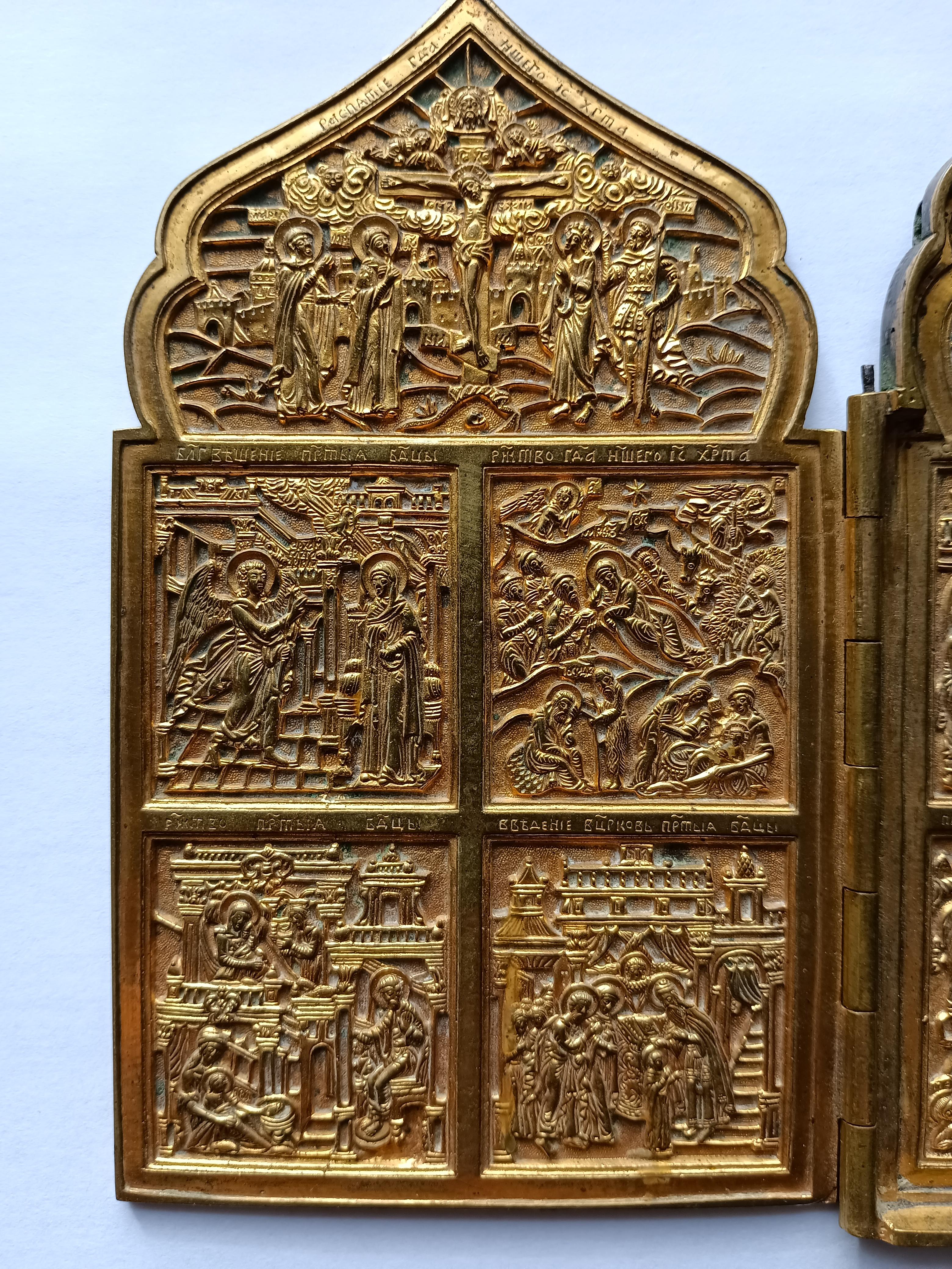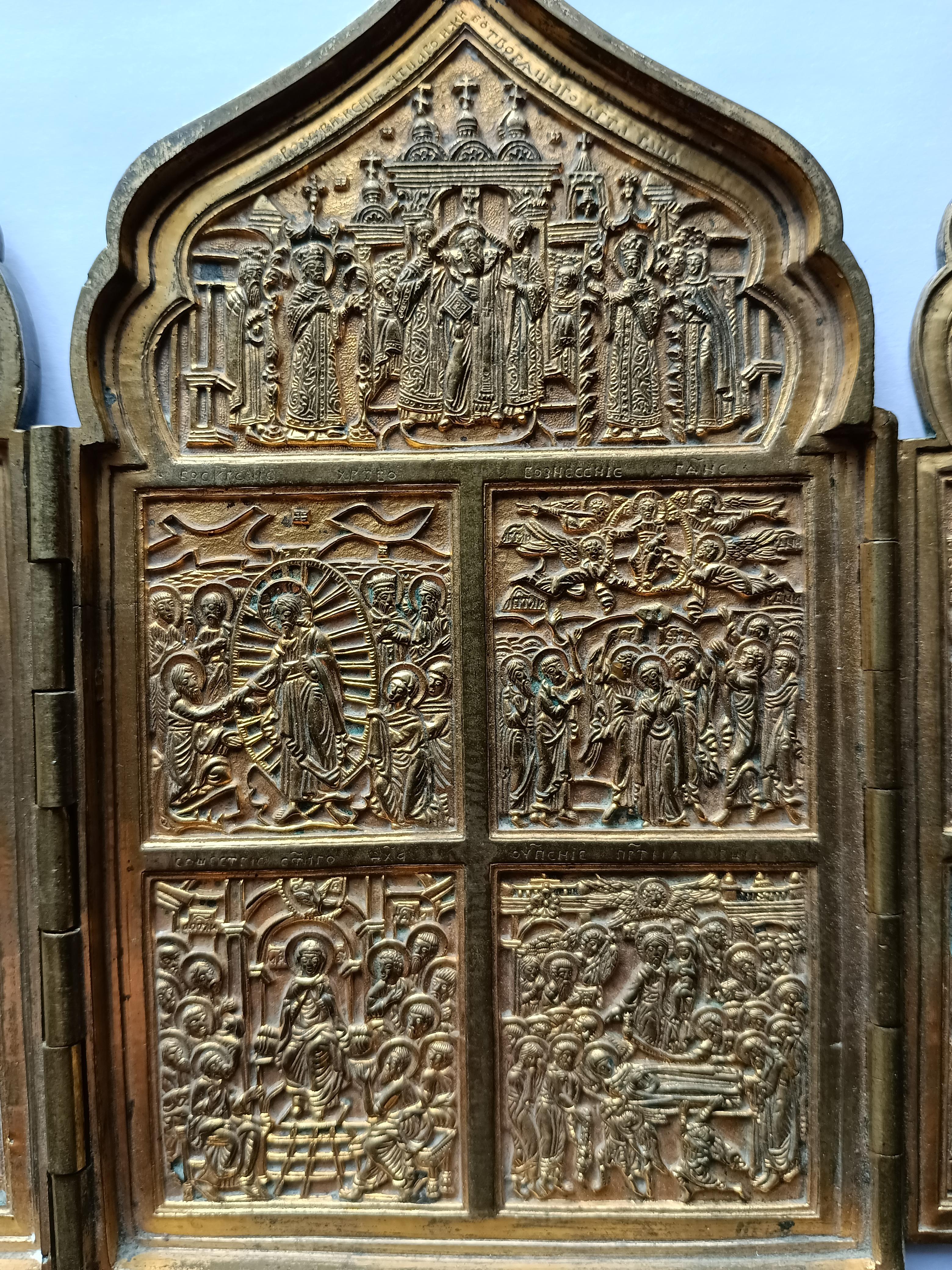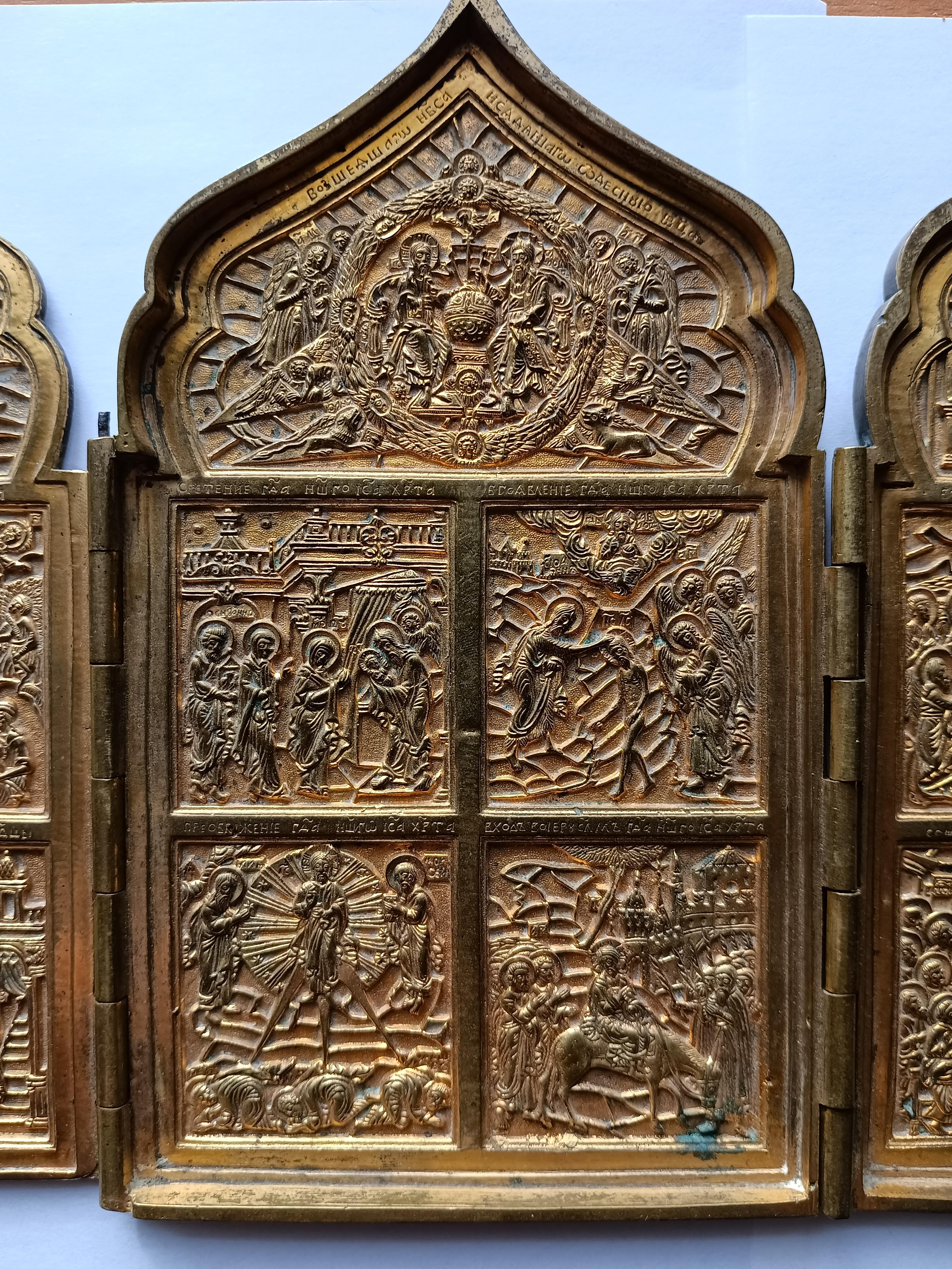 Складень "Праздники" Позолоченный в идеальном рельефе. Размер 41*18 см, вес 1550 гр.