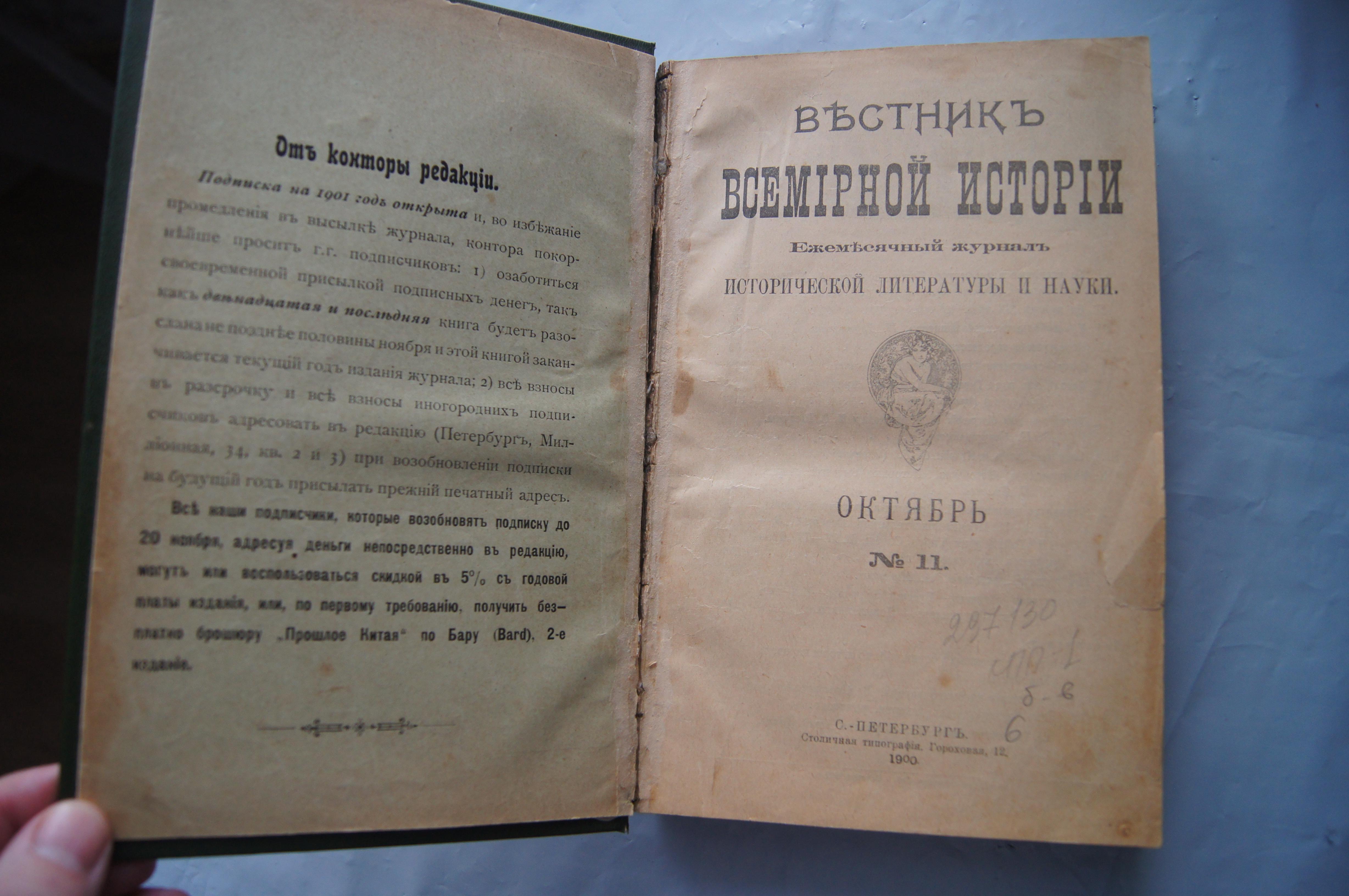 Вестник всемирной истории 1900 г. № 11 Размер 23*15*3,5 см Начинается с 49 страницы.